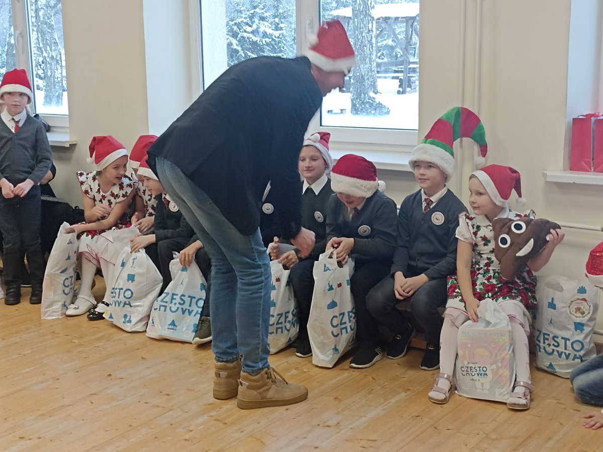 Na zakończenie pomocnicy Świętego Mikołaja udali się do klas, gdzie wręczyli wszystkim szumskim dzieciom prezenty.
