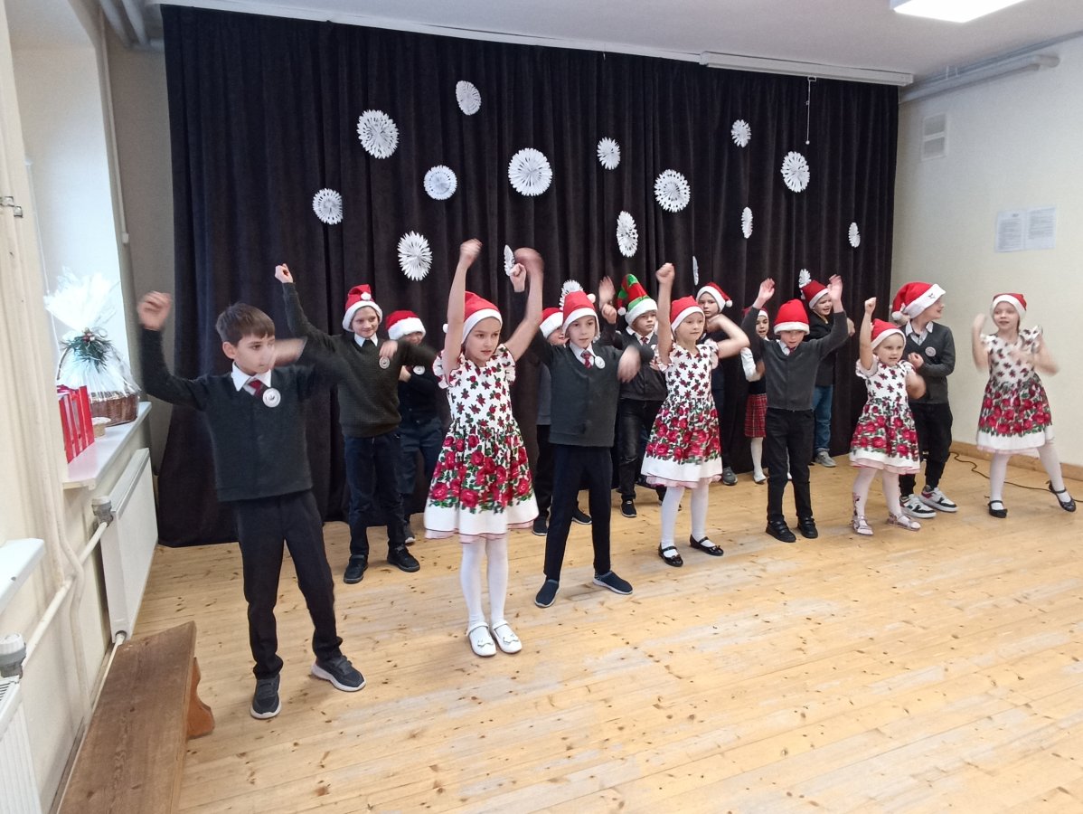 Najmniejsi uczniowie zaprezentowali krótki koncert i razem z gośćmi zatańczyli flash mob Jingle Bells. Takie grudniowe spotkanie to też czas, kiedy moc świątecznych życzeń wypełnia nasze serca. Dlatego wszyscy zebrani złożyli sobie życzenia świąteczne i przełamali się opłatkiem.