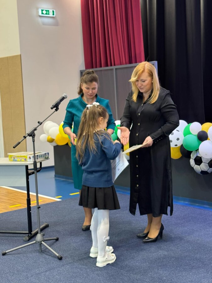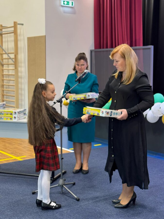 Za wzięcie udziału w konkursie każdy z uczestników był uhonorowany listem gratulacyjnym z rąk pani dyrektor gimnazjum Wiesławy Wojnicz. Mistrzowie zostali nagrodzeni dyplomami i prezentami ufundowanymi przez Wydział Oświaty Samorządu Rejonu Wileńskiego.