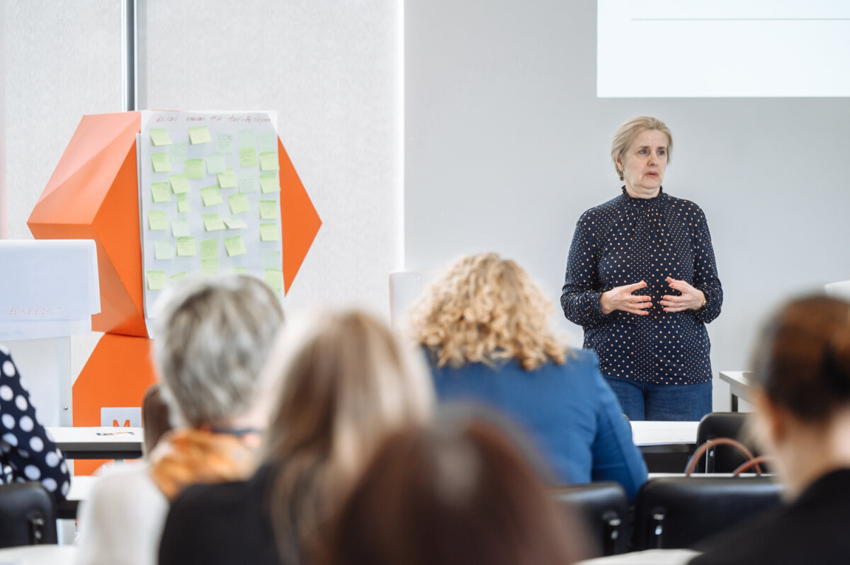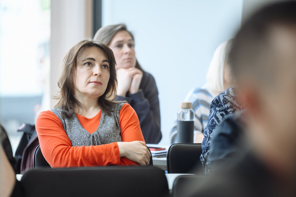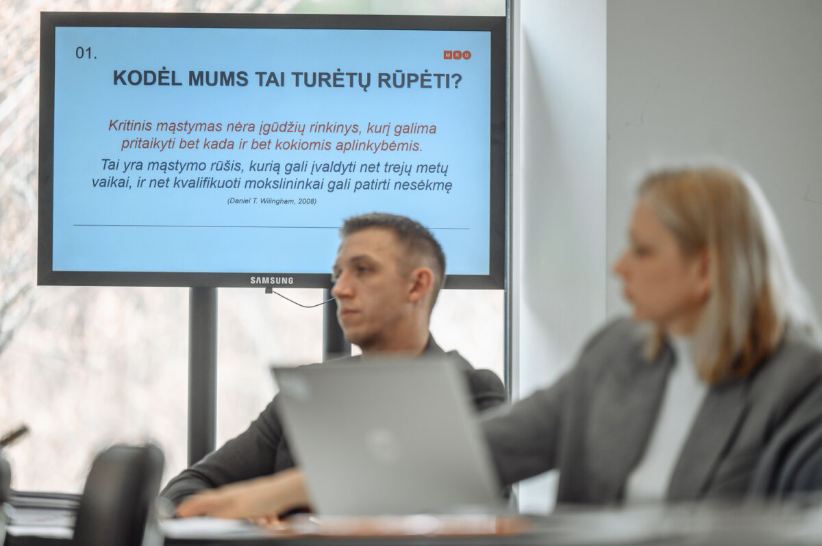 Uczestnikom projektu przedstawiono plan cyklu szkolenia, następnie wykładowca Asta Januškevičiūtė z Instytutu nauk pedagogicznych i pracy socjalnej oraz docent dr Daiva Penkauskienė przedstawiły znaczenie krytycznego myślenia w życiu człowieka i w działalności placówek oświatowych.