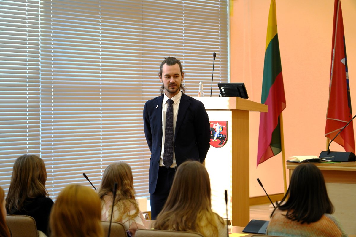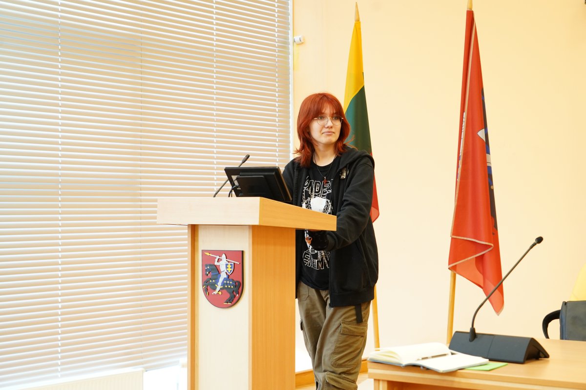 Gdy spotkanie dobiegało końca, mer zachęcił do przedstawienia się. Justina opowiedziała o zajęciach pozalekcyjnych związanych z technologiami informacyjnymi, a Gabija – o swoim zainteresowaniu rysowaniem i planach na przyszłość związanych z rysowaniem komiksów.