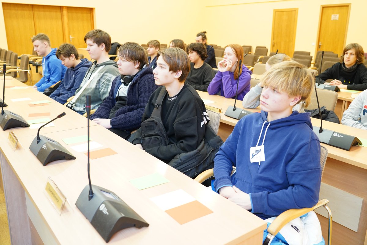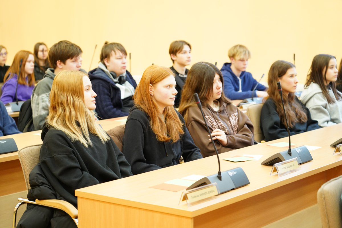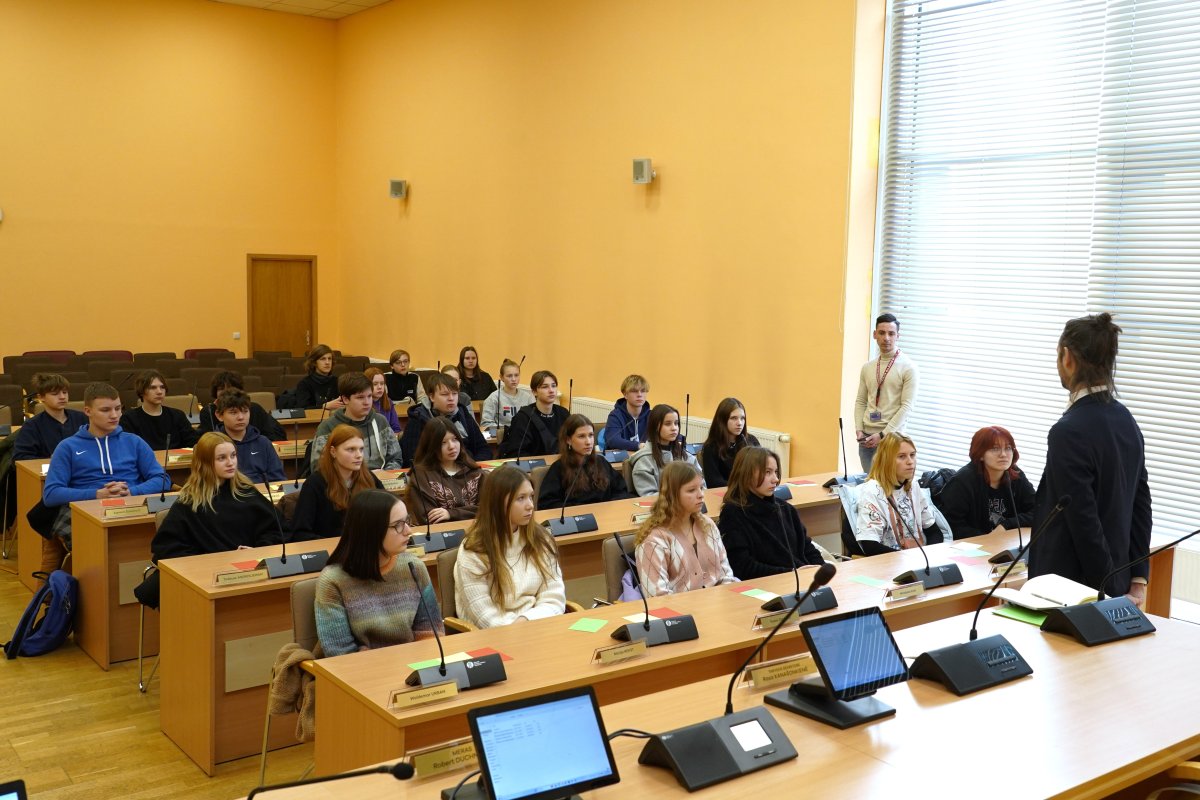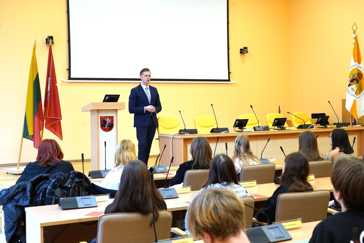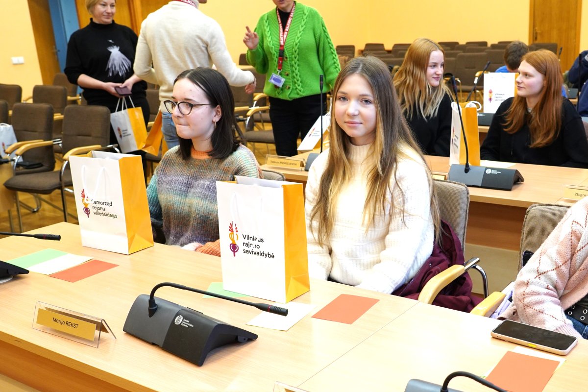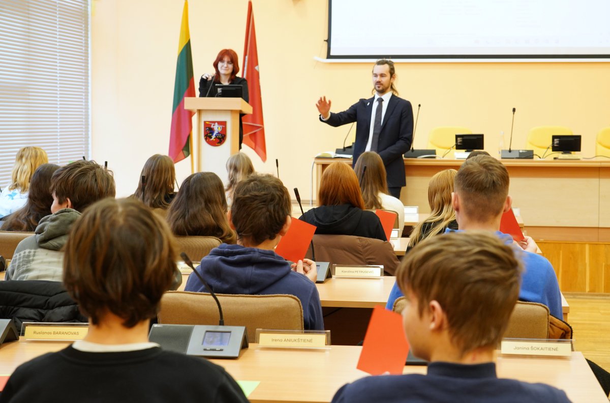 Rusłanas Baranovas, radny Samorządu Rejonu Wileńskiego, starosta frakcji socjaldemokratów, zapoznał uczniów z działalnością rady, trybem podejmowania uchwał, działalnością komitetów, przygotował dla uczniów symulację posiedzenia Rady, podczas której uczniowie mogli głosować „za” lub „przeciw” przedstawianej uchwały, podnosząc do góry kolorowe kartki papieru.