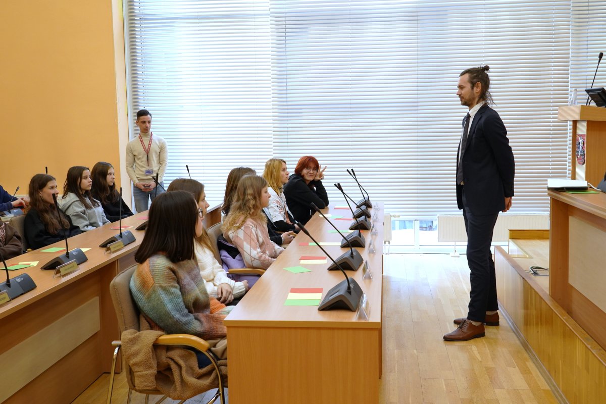 „Miło Was tu widzieć. To już drugi raz, kiedy koledzy organizują tego typu spotkania, symulacje posiedzeń Rady z uczniami, przybliżając uczniom samorząd terytorialny” – witając uczniów mówił mer Robert Duchniewicz.