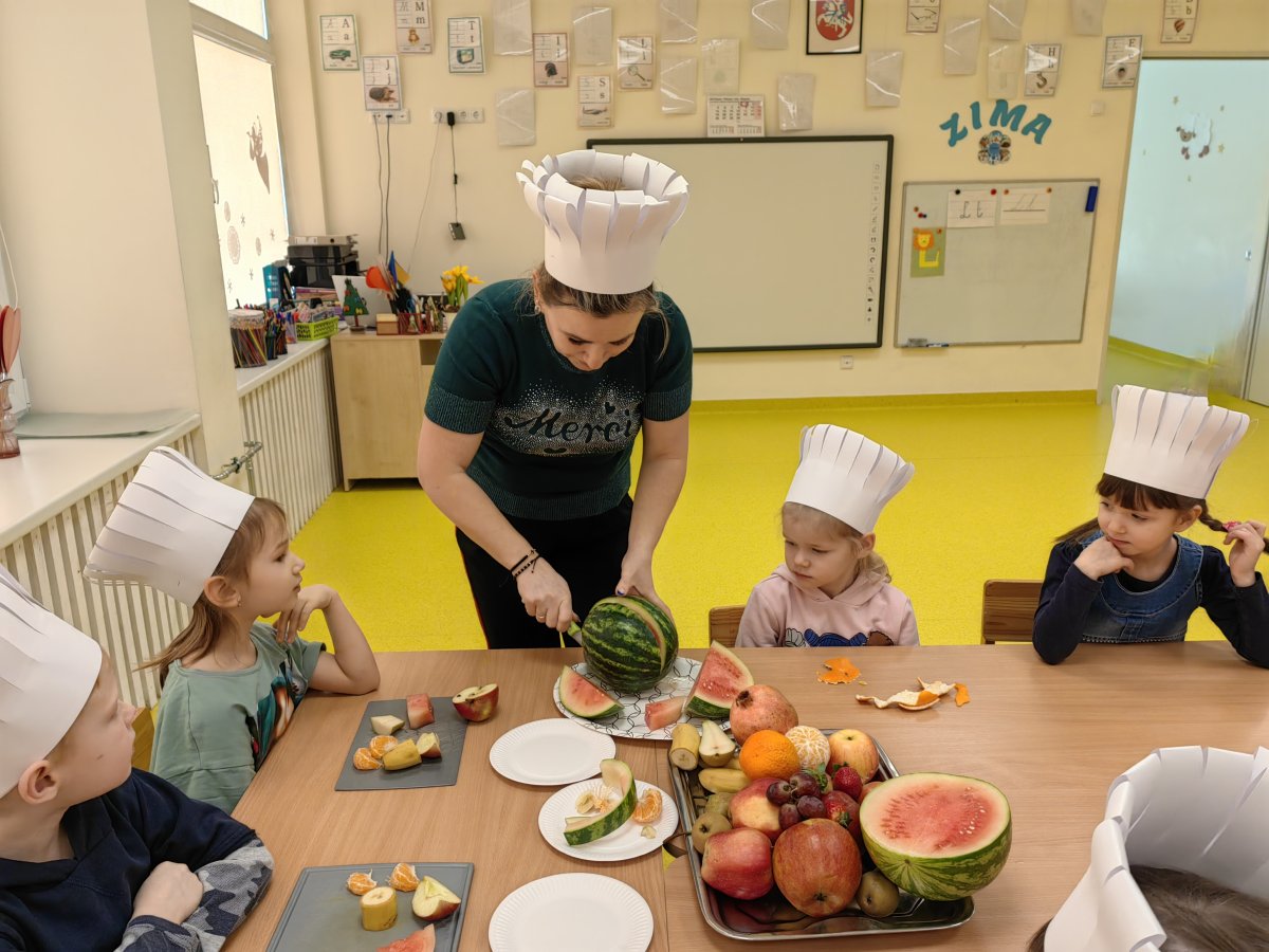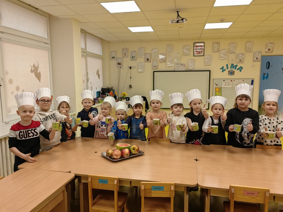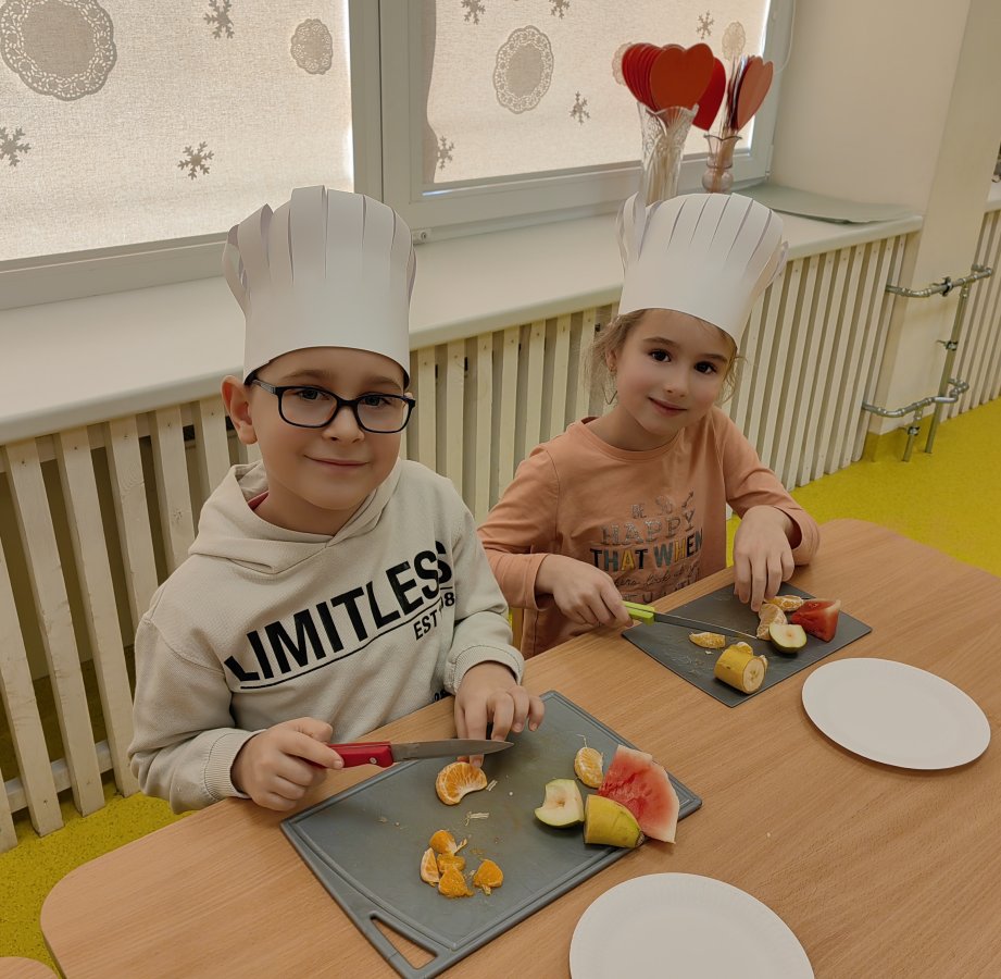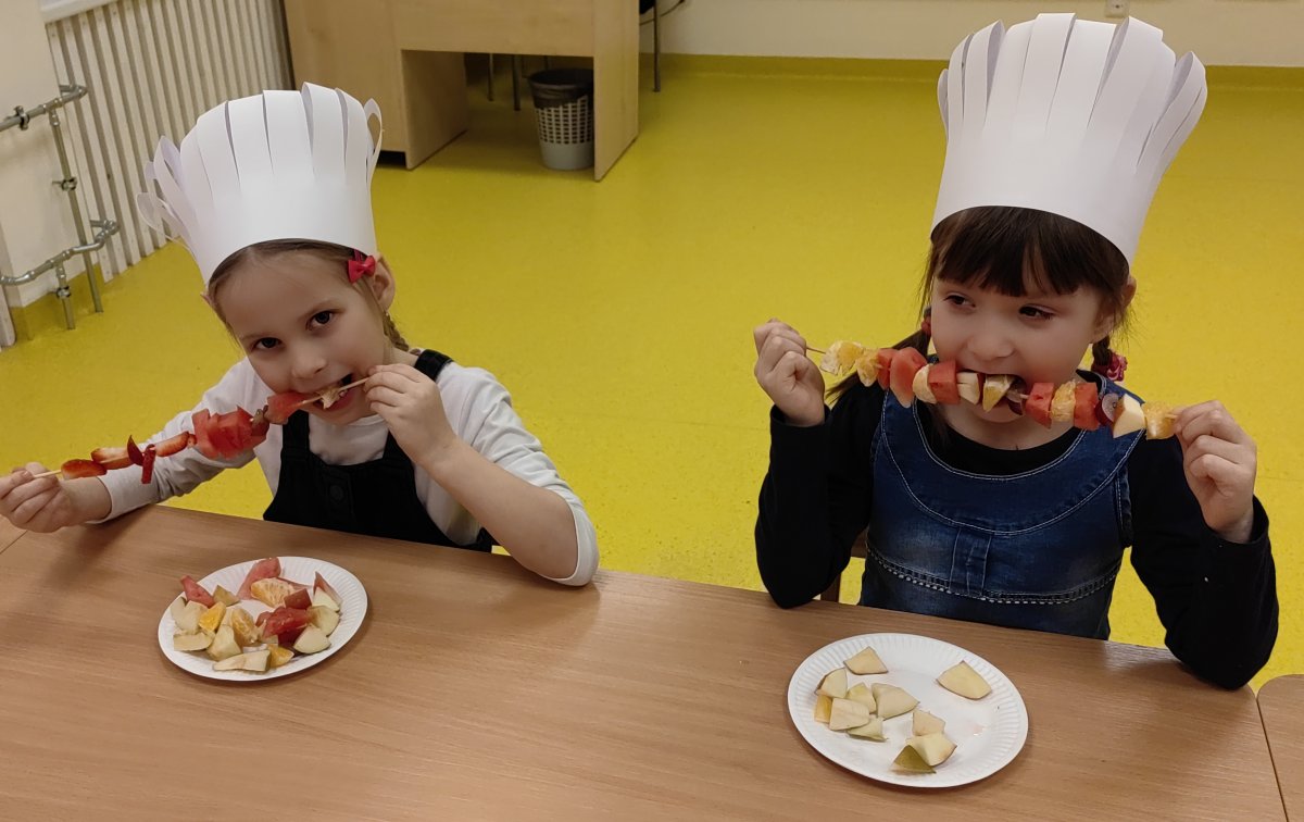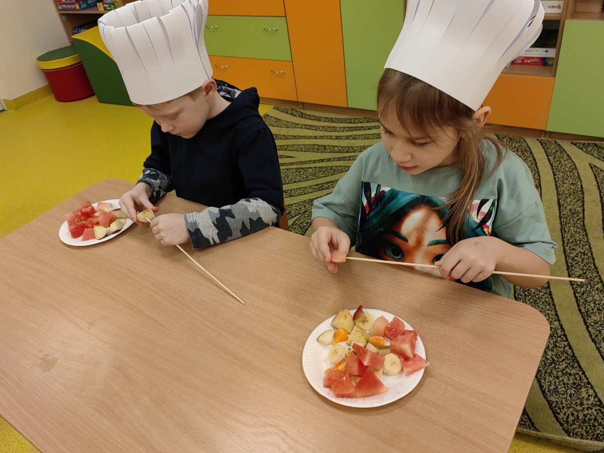 Tego dnia odbyły się zajęcia kulinarne, podczas których dzieci przygotowały zdrowe, smaczne i kolorowe „szaszłyki owocowe” oraz koktajle. Zajęcia poprzedzone były zabawą w rozwiązywanie zagadek smakowych i dotykowych, podczas których dzieci rozpoznawały za pomocą dotyku i smaku zgromadzone owoce. Wiele rozmawiano i dyskutowano na temat nawyków żywieniowych, dzieci oglądały ilustracje i filmy edukacyjne, słuchały wiersze i bajki oraz zapoznały się z piramidą zdrowego odżywiania.