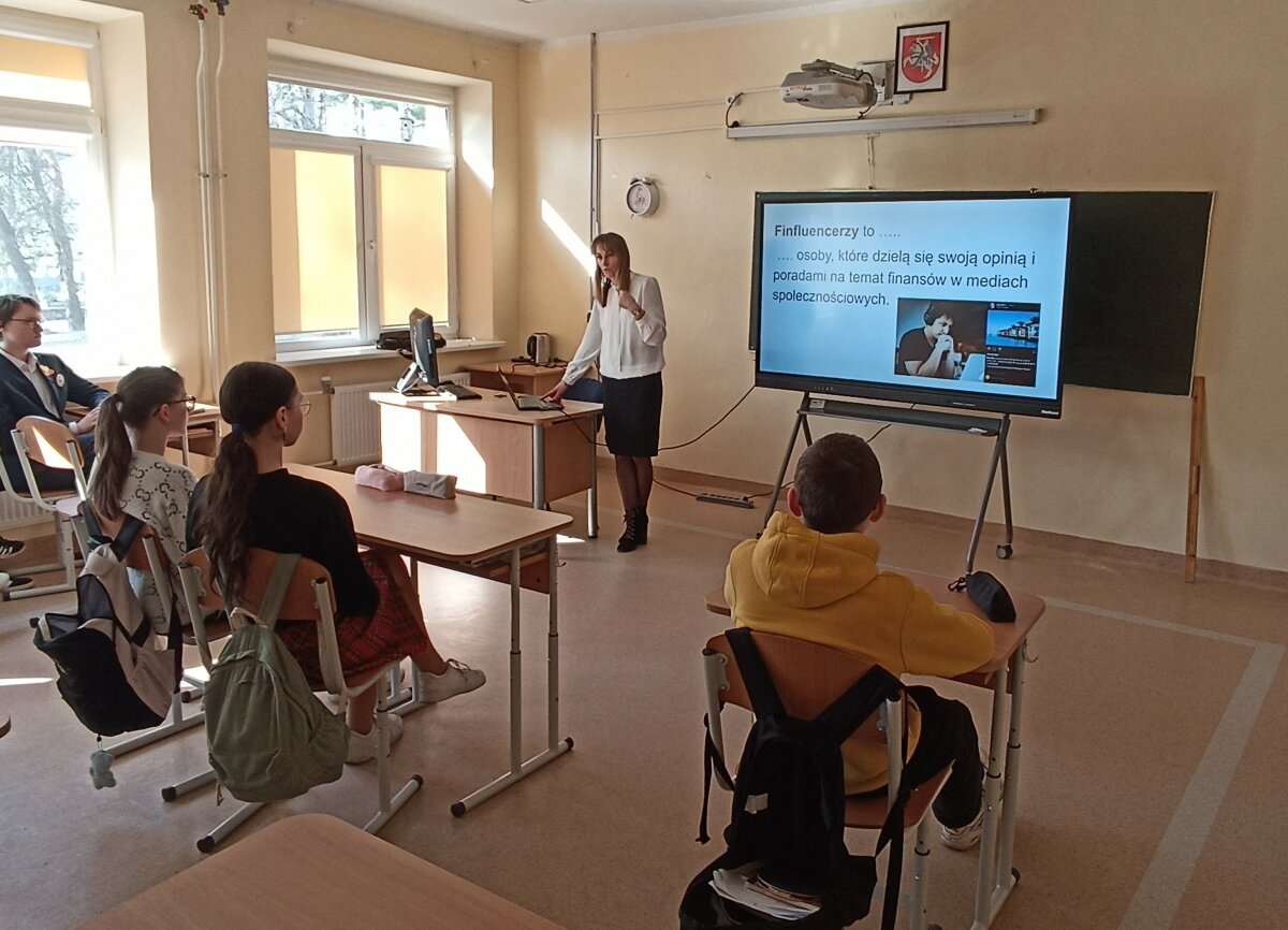 Dla uczniów klas 9–10 zorganizowano wykład pod tytułem „Finfluencerzy – jak oceniać informacje o finansach?”. Podczas wykładu młodzież analizowała wpływ finansowych influencerów, dowiedziała się, jak krytycznie podchodzić do porad finansowych krążących w przestrzeni internetowej i jak unikać dezinformacji.
