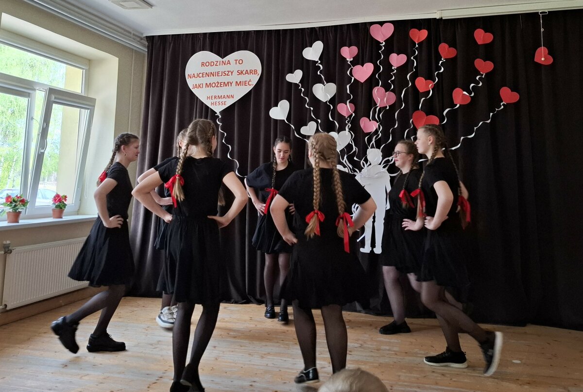 Publiczność była również oczarowana tańcami w wykonaniu uczniów klas 1-2, 3-4 oraz starszoklasistów, którzy zaprezentowali dynamiczne i dopracowane choreografie. Ostatni akcent uroczystości, jakim było wręczenie rodzicom pięknych wiązanek z polnych i ogródkowych kwiatów oraz piernikowych serc, poruszył wszystkich do głębi. Wiele mam miało łzy szczęścia w oczach, słysząc pełne miłości słowa swoich dzieci.