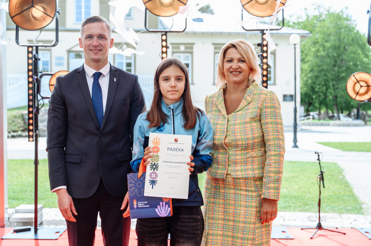 „Drodzy uczniowie, nauczyciele, dyrektorzy szkół, rodzice i bliscy – dziś zebraliśmy się, aby uhonorować nasze gwiazdy sztuki, muzyki, sztuk pięknych i sportu. Myślę, że każdy z nas jest dziś trochę zaskoczony – nawet ja, patrząc na listę uczestników, nie spodziewałam się tak licznej grupy naszych zwycięzców. Jestem pewna, że Wy, jadąc tu, myśleliście o swoich dzieciach, uczniach, ale nie przypuszczaliście, że tylu zdolnych gwiazd mamy w naszym rejonie. Dzisiejsze nagrody to nie tylko dyplomy czy medale, to docenienie codziennej ciężkiej pracy, woli, wysiłków, potu, a czasem pokonywania samego siebie. A jednak – po każdym wyzwaniu przychodzi inspiracja. Dziś mówimy wam z całego serca „dziękuję”. Niech to święto co roku powraca z ciepłem, szacunkiem i dumą z naszej młodzieży” – gratulowała Edyta Tamošiūnaitė, wicemer samorządu rejonu wileńskiego.