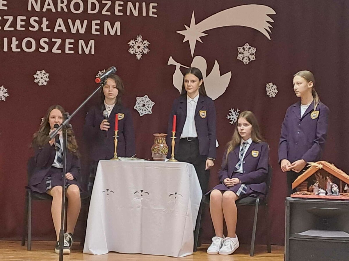 Dni Patrona społeczność szkolna uwieńczyła uroczystym koncertem „Boże Narodzenie z Czesławem Miłoszem”. „Naturalnie – Boże Narodzenie i Wielkanoc: wszystko to u nas w domu, nie tylko na wsi, ale kiedy mieszkaliśmy w Wilnie, było skrzętnie, starannie przestrzegane. Wszelkie rytualne przygotowania do Wigilii, wigilia złożona z tradycyjnych potraw (...)” – wspominał Miłosz. Podczas koncertu nie tylko upamiętniono Patrona szkoły, ale również wprowadzono atmosferę nadchodzących Świąt Bożego Narodzenia. Wiersze i fragmenty prozy, które składały się na scenariusz, były pełne refleksji i przypominały o wartościach bliskich zarówno społeczności, jak i ich Patronowi.