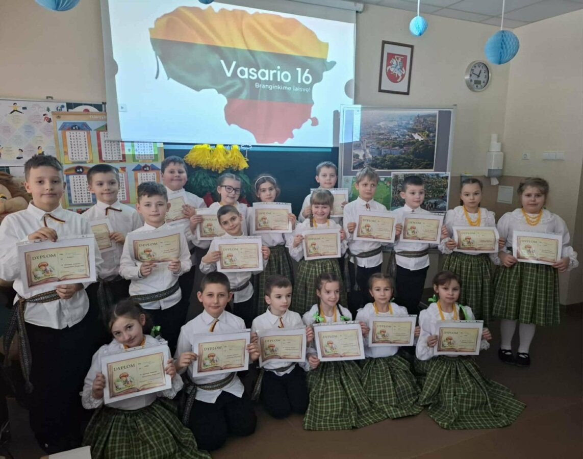 W dniach 9–13 lutego w naszym gimnazjum odbył się uroczysty tydzień pod hasłem „Piękna jesteś, moja droga Ojczyzno”, zorganizowany z okazji 16 lutego – Dnia Odzyskania Niepodległości Litwy. Inicjatorkami wydarzenia były nauczycielka języka litewskiego i literatury Wioleta Milewska-Burak oraz nauczycielka muzyki Mirena Kasperowicz, które zaprosiły całą społeczność szkolną do wspólnego pielęgnowania postaw obywatelskich, miłości do Litwy, kreatywności oraz jedności.