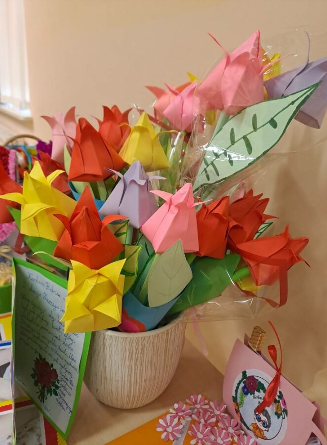 W trakcie uroczystości uczniowie wręczyli swoim najbliższym własnoręcznie wykonane upominki, które z pewnością na długo pozostaną w sercach obdarowanych. Nie zabrakło również tradycyjnego „Sto lat”, które wszyscy zebrani zaśpiewali z wielkim entuzjazmem.