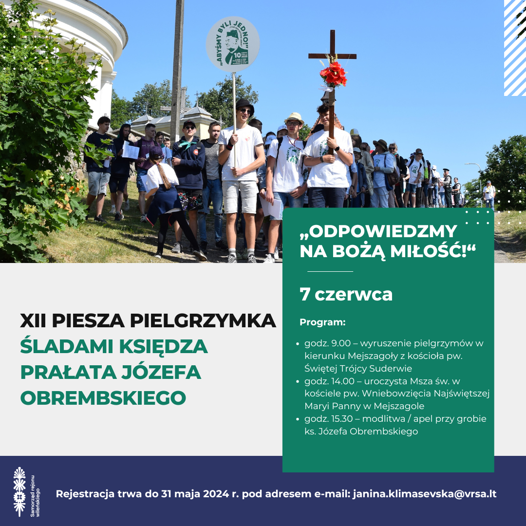 W dniu 7 czerwca br. odbędzie się tradycyjna XII Piesza Pielgrzymka Śladami Księdza Prałata Józefa Obremskiego na trasie Suderwa – Mejszagoła.