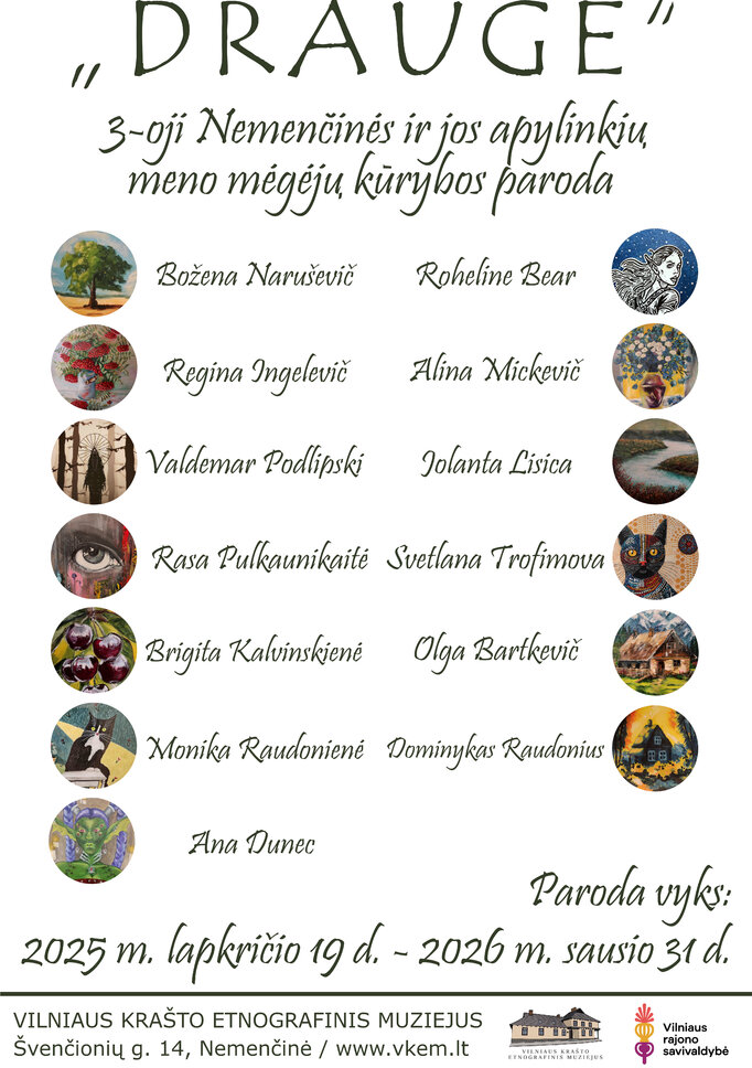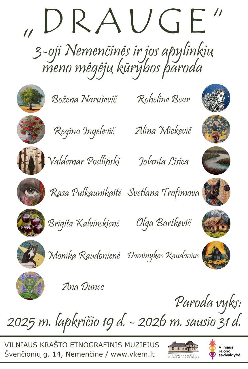 Parodos dalyviai: Božena Naruševič, Roheline Bear, Regina Ingelevič, Alina Mickevič, Valdemar Podlipski, Jolanta Lisica, Rasa Pulkaunikaitė, Svetlana Trofimova, Brigita Kalvinskienė, Olga Bartkevič, Monika Raudonienė, Dominykas Raudonius, Ana Dunec.