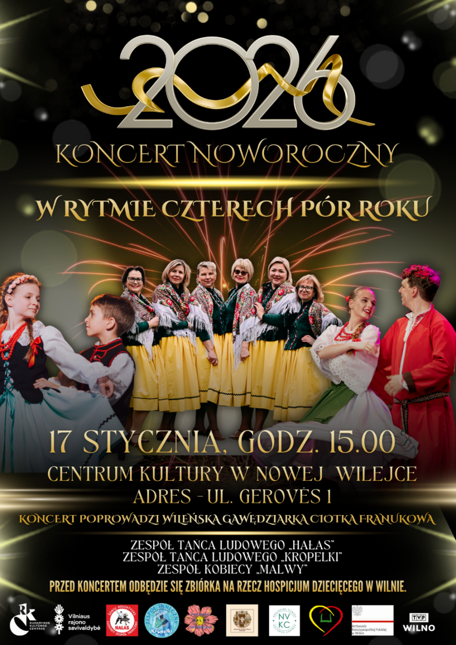 Šokių kolektyvai „Halas“, „Kropelki“ ir moterų kolektyvas „Malwy“ kviečia į naujametinį koncertą „Keturių sezonų ritmu“, skirtą 2026-ųjų startui su trenksmu!