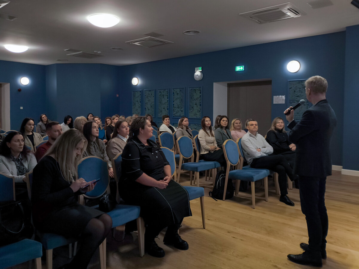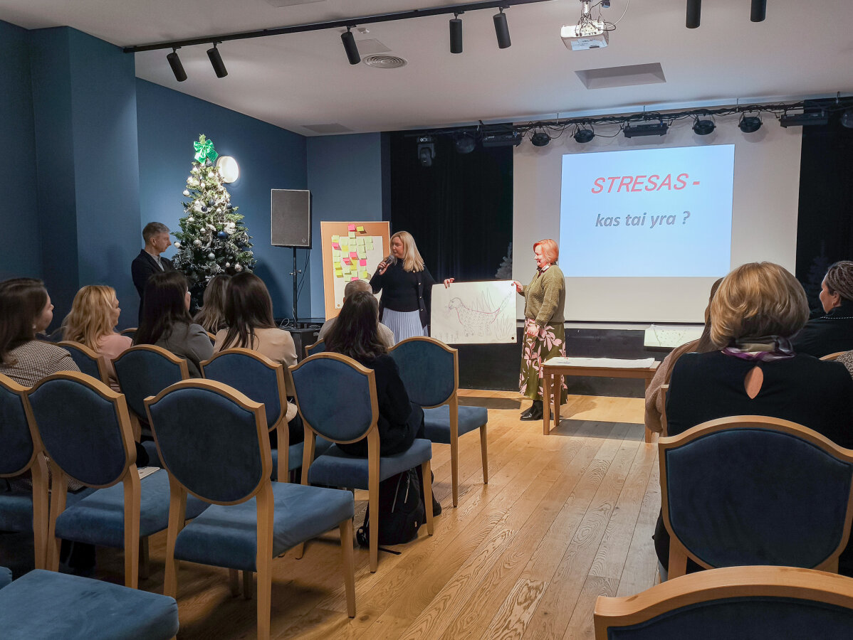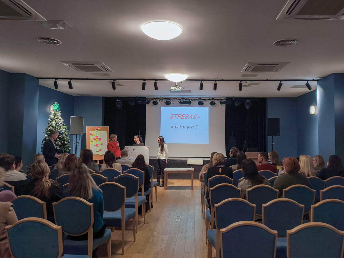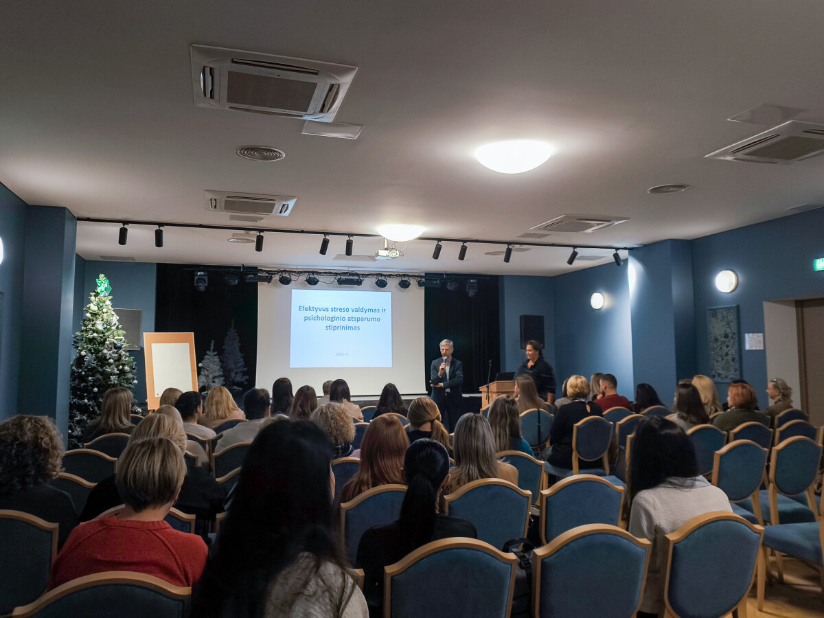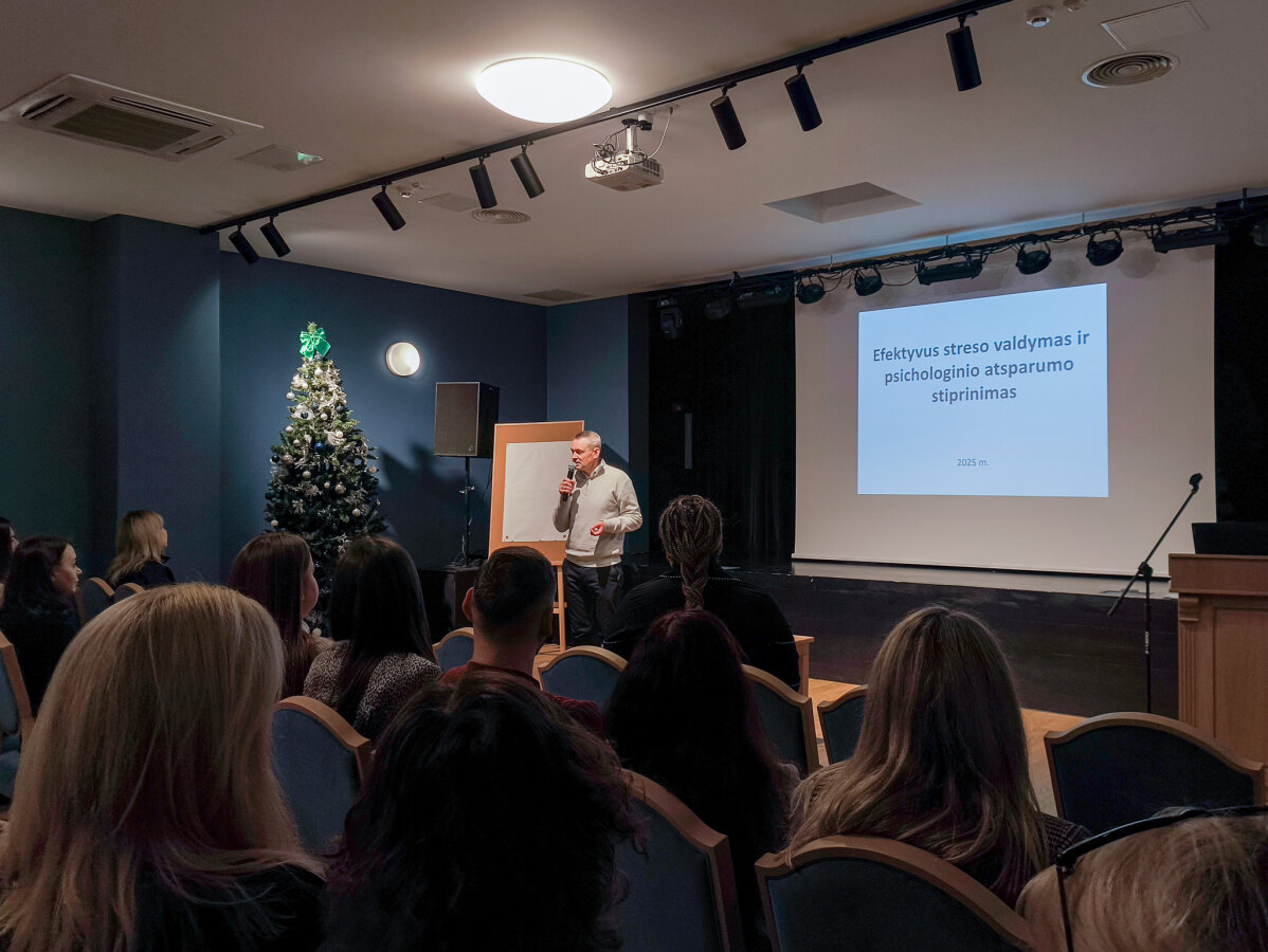 Mokymų „Streso valdymas ir atsparumo stiprinimas“ metu Vilniaus rajono pedagoginės psichologinės tarnybos direktorius Roman Juchnevič pristatė streso sampratą, pagrindinius jo požymius ir tipus, aptarė dažniausius stresą sukeliančius veiksnius. Taip pat buvo diskutuojama apie streso poveikį darbo efektyvumui, streso suvokimo reikšmę, balanso svarbą bei kaupiamojo streso valdymo būdus. Dalyviai aktyviai dalijosi savo patirtimi ir įžvalgomis.