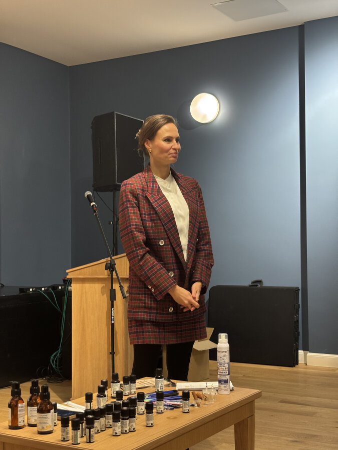 Antroje mokymų dalyje Erika Daugėlaitė, SPA „Provanso kvapai“ įkūrėja, supažindino dalyvius su skirtingais aliejiniais kvapais ir jų poveikiu bei suteikė galimybę patiems pasigaminti stresą ir įtampą mažinančius kvapus.