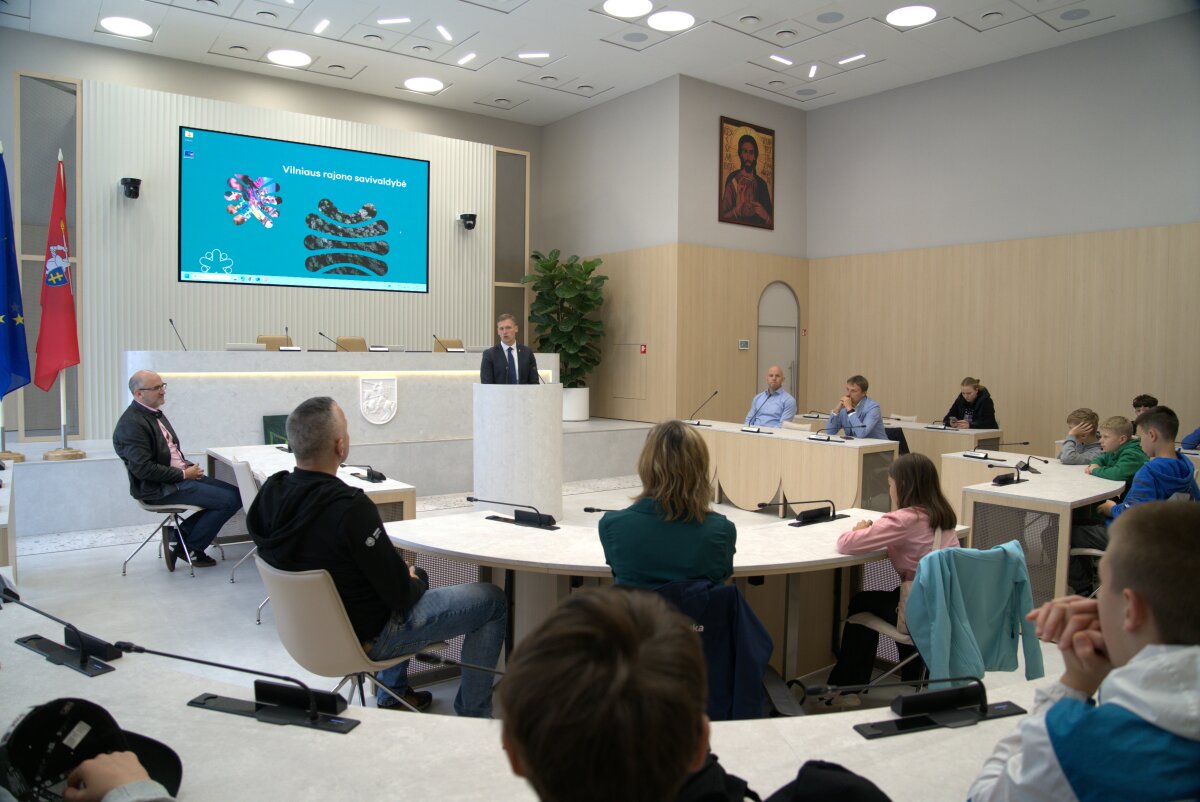 Šiandien, birželio 12 d., Vilniaus rajono savivaldybės meras Robert Duchnevič susitiko su projekto „Per sportą į naująsias technologijas – BASKETTECH 2025“ dalyviais. Susitikime dalyvavo jaunuoliai ir mokytojai iš Lietuvos bei Lenkijos, kuriuos vienija susidomėjimas naujausiomis technologijomis ir aistra krepšiniui.