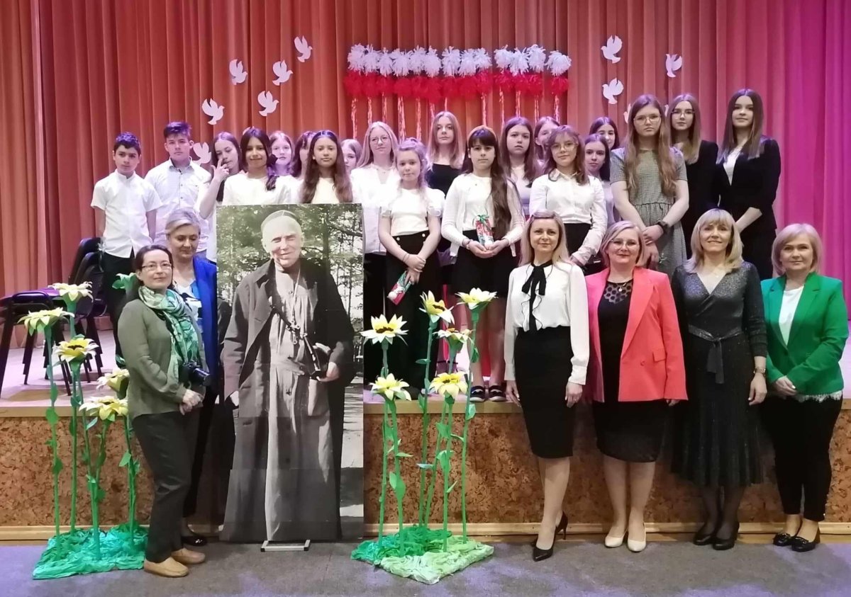 Balandžio 17 d. mūsų gimnazijoje vykusios Vilniaus rajono mokyklų konferencijos „Mano mokyklos vardas“, minint 159-ąsias mūsų šv. Uršulės Leduchovskos gimnazijos globėjos gimimo metines metu, mokinės iš pagrindinės mokyklos Nr. 11 Čenstakavoje pristatė savo įstaigos globėją Mariją Dąbrovską ir papasakojo apie savo mokyklą.