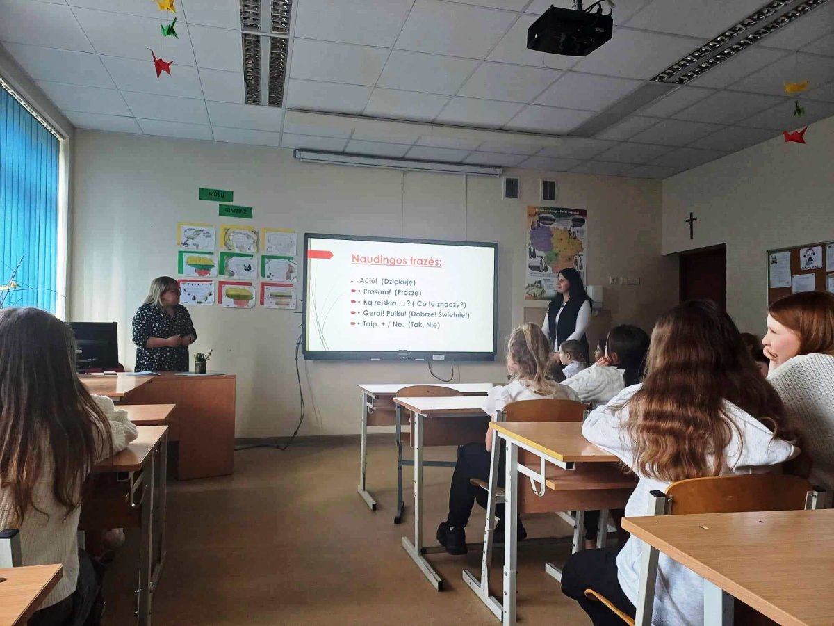 Kartu su mūsų mokiniais svečiai iš Lenkijos dalyvavo integruotoje muzikos ir lietuvių kalbos pamokoje, kurios metu mokėsi pagrindinių frazių lietuvių kalba bei dainavo populiarią vaikišką dainelę „Du gaideliai“. Vėliau vyko karatė treniruotė, kurių metu išmoko kelių savigynos veiksmų.