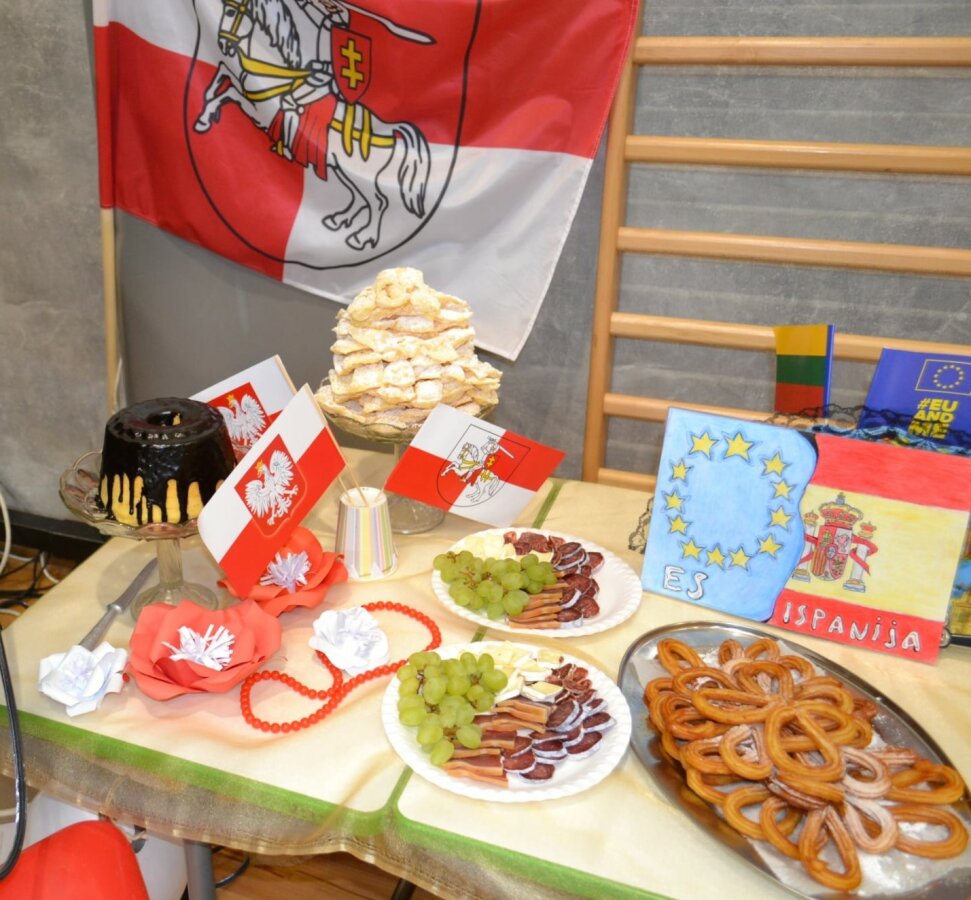 Renginį vainikavo nacionalinių patiekalų degustacija. Mokiniai, padedami mokytojų ir tėvų, paruošė įvairių Europos šalių patiekalus – stalai lūžo nuo itališkų picų, prancūziškų kruasanų, belgiškų vaflių, ispaniškų „churros“ ir kitų skanumynų. Degustacija tapo puikia proga ne tik paragauti kitų šalių virtuvių gardėsių, bet ir pasijusti tarsi kelionėje po visą Europą.