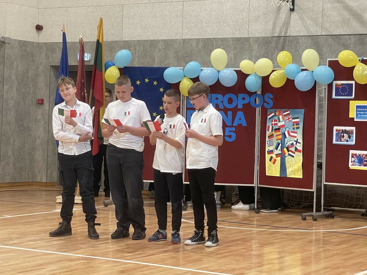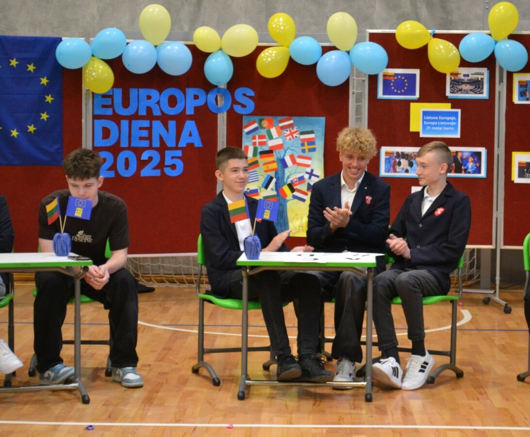Vyresniųjų klasių mokiniai (8–IVG kl.) dalyvavo protų mūšyje „Aš esu europietis“, kuriame varžėsi dėl geriausiai Europos Sąjungą išmanančios klasės titulo. Viktorina ne tik patikrino mokinių žinias, bet ir paskatino juos domėtis ES veikla, simboliais, istorija bei dabartinėmis aktualijomis. Be to, 8–IVG klasių mokiniai dalyvavo ir Europos egzamine, kuriame pasitikrino žinias apie Europos Sąjungą, jos istoriją, institucijas ir vertybes.