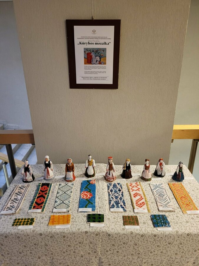 Ši paroda skiriama mokyklos veiklos 20-mečiui. Joje eksponuojami dailės talentingiausių mokyklos mokinių 24 piešimo, tapybos, kompozicijos ir 22 keramikos darbai. Kūriniuose atsispindi dailės ugdymo etapai. Pristatomi tiek akademinio piešimo, tapybos, tiek kūrybinių, abstrakčių kompozicijų darbai. Keramikos kūriniai atvaizduoja Lietuvos regionų tautinius rūbus. Atsakinga už parodos organizavimą dailės mokytoja metodininkė Ivona Dakinevič, pristatydama parodą, teigė, jog tai – ilgamečio darbo proceso rezultatas. Parodoje „Kūrybos mozaika“ vaizduojami natiurmortai, natiurmortų transformacijos, dekoratyvinės kompozicijos, nupieštos gipsinės formos, portretai ir autoportretai. Mokinius paruošė dailės mokytojos: mokytoja Teresa Lukaševič, vyresnioji mokytoja Olga Kania, mokytoja metodininkė Svetlana Voytkevich ir mokytoja metodininkė Ivona Dakinevič.