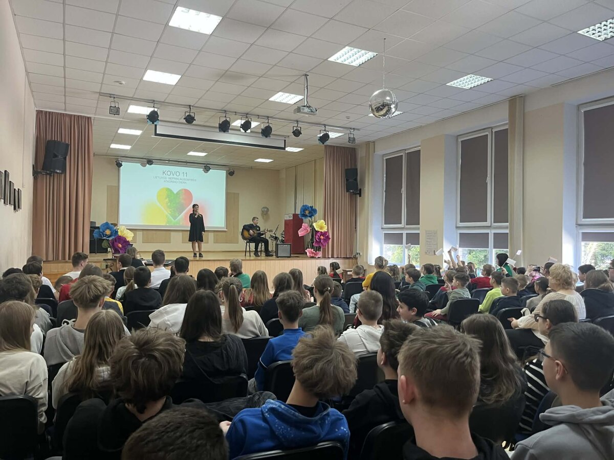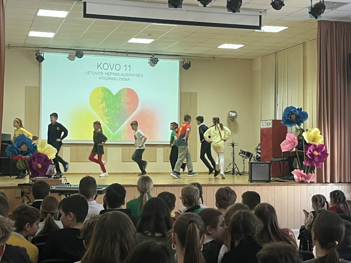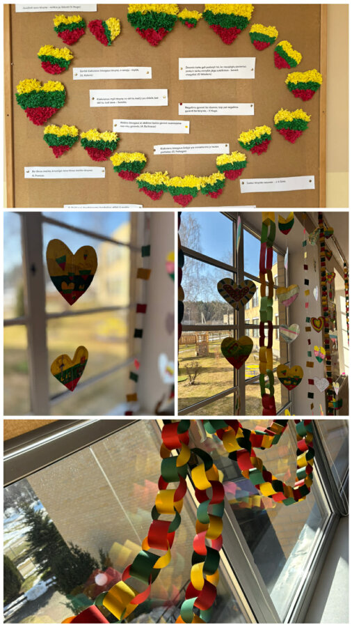 5–10 klasių mokiniai per integruotas dailės ir gyvenimo įgūdžių pamokas dalyvavo akcijoje „Aš esu gimnazijos dalis“. Jie kūrė širdeles, kurios susijungė į bendrą kūrinį, simbolizuojantį gimnazijos bendrystę. Trispalvės girliandos papuošė mokyklos langus.