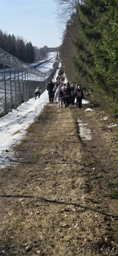 6 klasės mokiniai kartu su Valstybės sienos apsaugos tarnybos (VSAT) pareigūnais leidosi į žygį. Jis prasidėjo prie Medininkų pilies – prieš startą visi sugiedojo Lietuvos himną. Dešimties kilometrų maršrutas driekėsi palei Lietuvos ir Baltarusijos sieną, o žygio pabaigoje dalyviai vaišinosi kareiviška koše ir karšta arbata.
