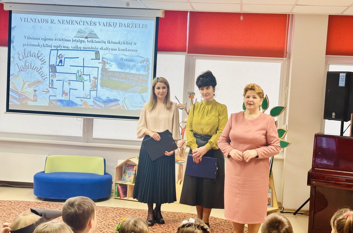 Vasario 28 dienos rytą Vilniaus r. Nemenčinės vaikų darželio muzikos salėje, į Vilniaus rajono švietimo įstaigų, teikiančių ikimokyklinį ir priešmokyklinį ugdymą, vaikų meninio skaitymo konkursą „Eilėraščio labirintais“, rinkosi ikimokyklinukai ir priešmokyklinukai iš viso Vilniaus rajono, juos parengę mokytojai bei jų tėveliai. Meninio skaitymo konkursas – jubiliejinis, nes vyko 15-ąjį kartą. Jame dalyvavo net 48 vaikai.