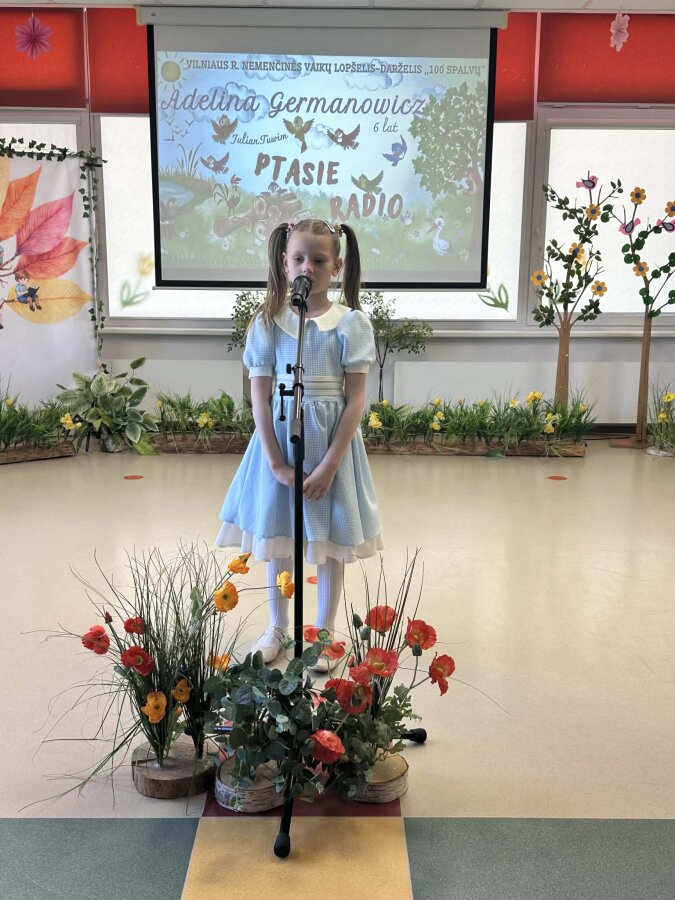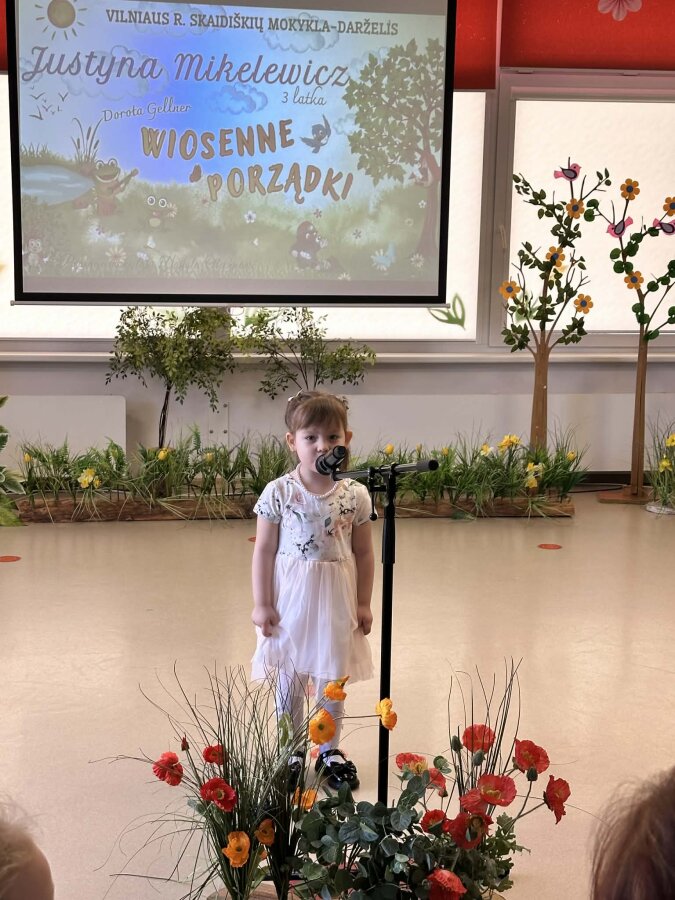 Vėliau scenoje vienas po kito pasirodė vaikai, deklamuodami kruopščiai išmoktas eiles. Kiekvienas pasirodymas buvo savitas ir ypatingas – kupinas emocijų, nuoširdumo bei vaikiško žavesio. Jaunieji skaitovai stebino ne tik gražia ir taisyklinga tartimi, bet ir gebėjimu perteikti kūrinių nuotaiką.