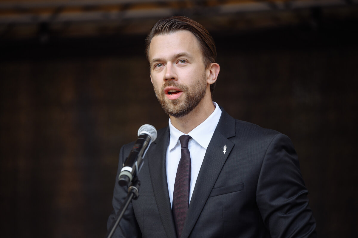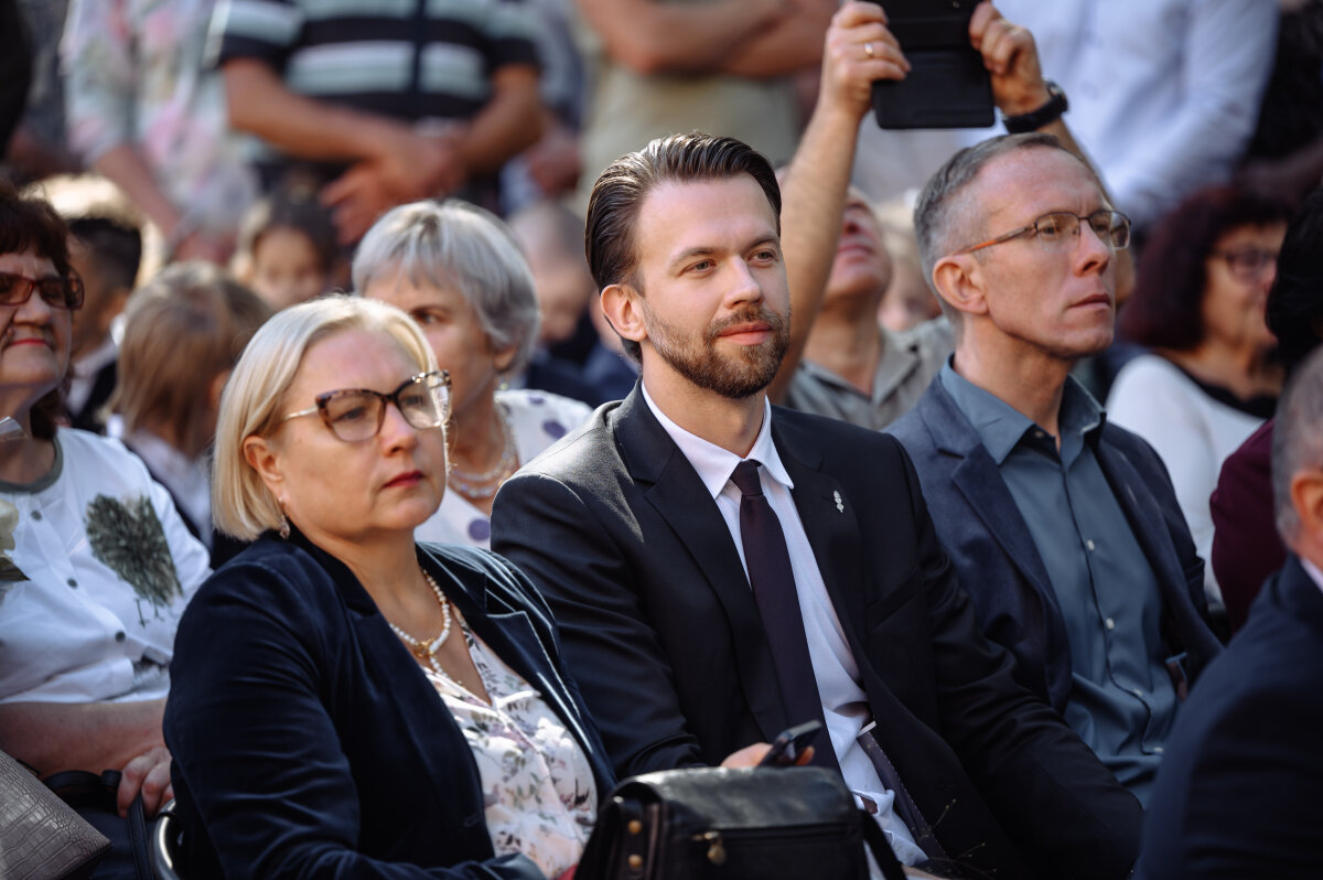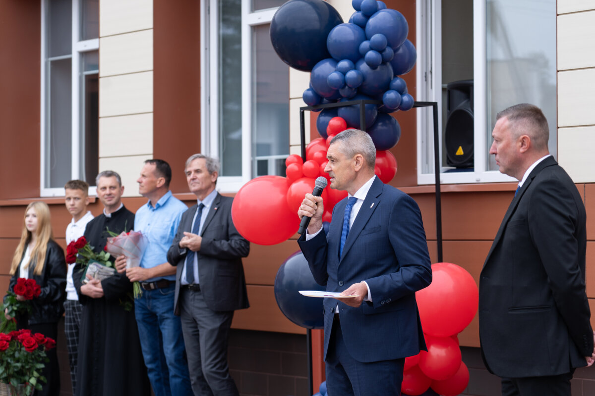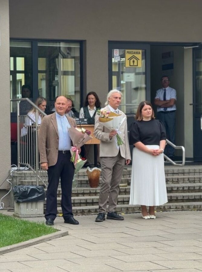 „Sveikinu visus Rugsėjo 1-osios proga. Tai, be abejo, ypatinga diena visiems čia esantiems: mokiniams, jų tėvams bei pedagogams. Šiandien ši šventė taip pat ypatinga tuo, kad šalia gimnazijos pradeda veikti naujasis modulinis darželis, kuris buvo pastatytas itin greitai, vos per dvi savaites, nepaisant to, kad projektui įgyvendinti prireikė dvejų metų“, – sakė vicemeras A. Vaitkevičius.