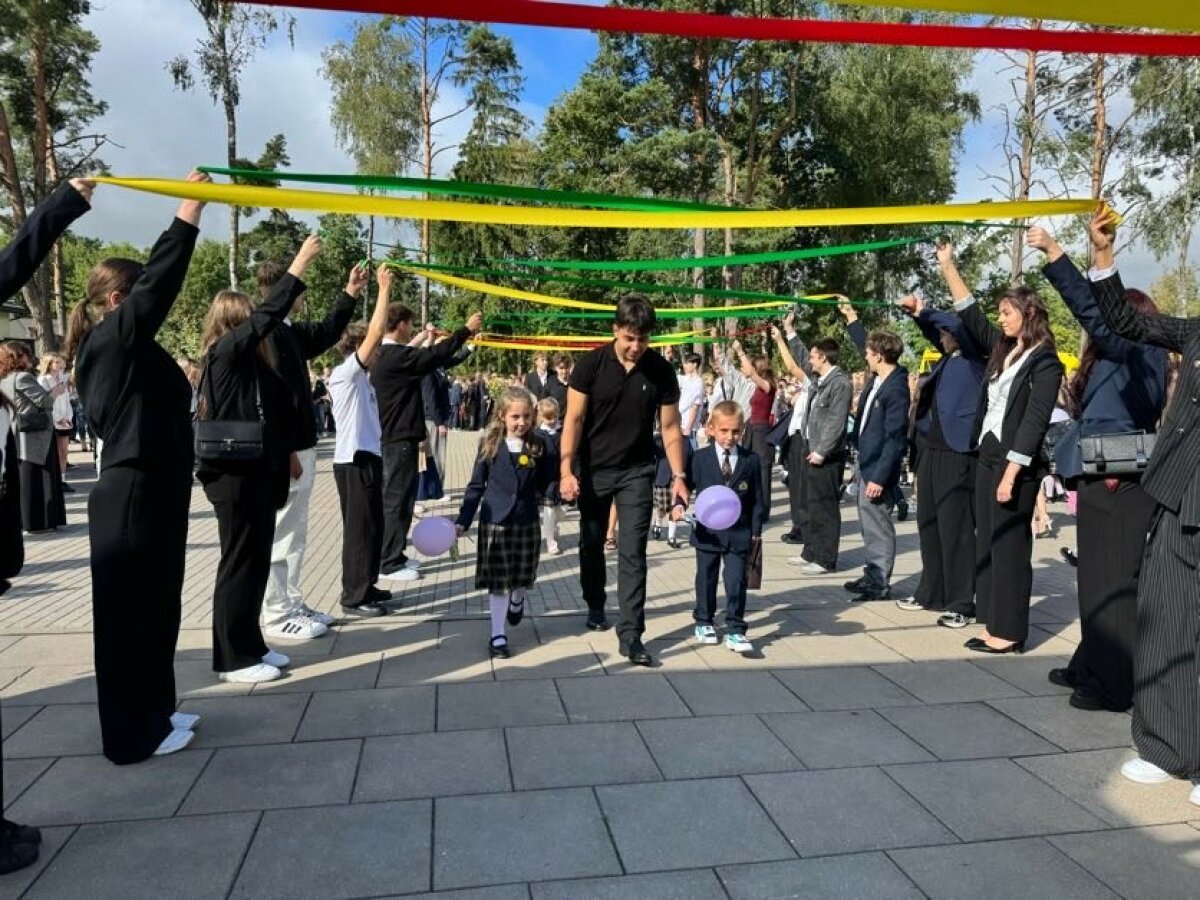 Šventinę nuotaiką dar labiau pakylėjo gimnazijos direktorės sveikinimas ir bendruomeniškai sugiedotas gimnazijos himnas. Ypatinga tradicinė akimirka – pirmokų palydėjimas į jų pirmąją pamoką – simbolizavo naujos kelionės pradžią, kupiną atradimų, draugystės ir bendrystės.