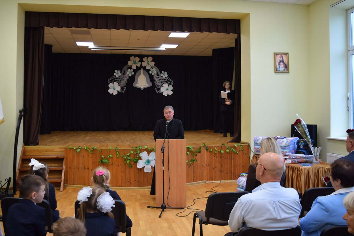 Administracijos direktorius Vytautas Vansavičius pasveikino Vilniaus r. Nemenčinės Gedimino gimnazijos bendruomenę
