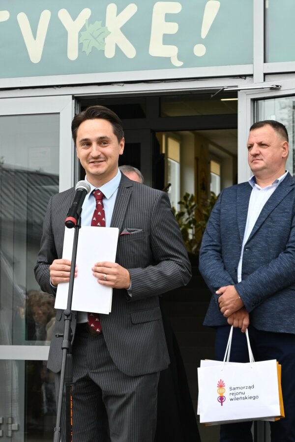 „Man didelė garbė Vilniaus rajono savivaldybės mero Roberto Duchnevičiaus vardu pasveikinti jus visus Rugsėjo 1-osios proga! Šiandien atverčiame naują mokslo metų puslapį, kupiną naujų galimybių, atradimų ir patirčių. Mokiniams linkime drąsiai siekti žinių, naujų įgūdžių ir pasitikėjimo savimi, kad kiekvienas iššūkis taptų žingsniu link sėkmės. Pedagogams dėkojame už jų kilnų darbą ir atsidavimą, linkime neišsenkančios energijos ir kūrybiškumo. Ir, žinoma, tėveliams – daug stiprybės, supratimo ir džiaugsmo stebint savo vaikų pasiekimus. Visiems sėkmingos ir įkvepiančios naujų mokslo metų pradžios!“, – sakė V. Vansavičius.