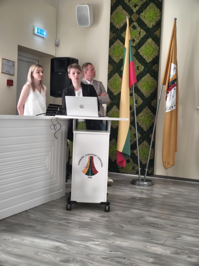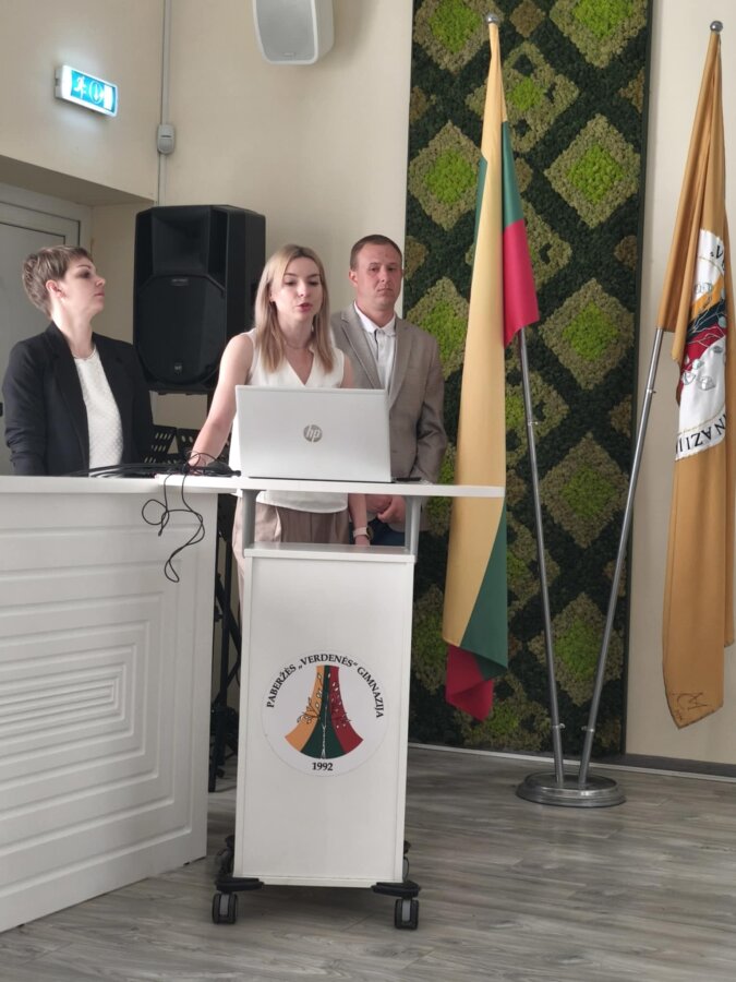 Pradėdama renginį, gimnazijos direktorė Violeta Dapkevičienė visus susirinkusiuosius pasveikino ir pasidžiaugė šia gražia tradicija – mokslo metų pabaigoje susirinkti ir pasidalinti savo nuveiktais darbais.