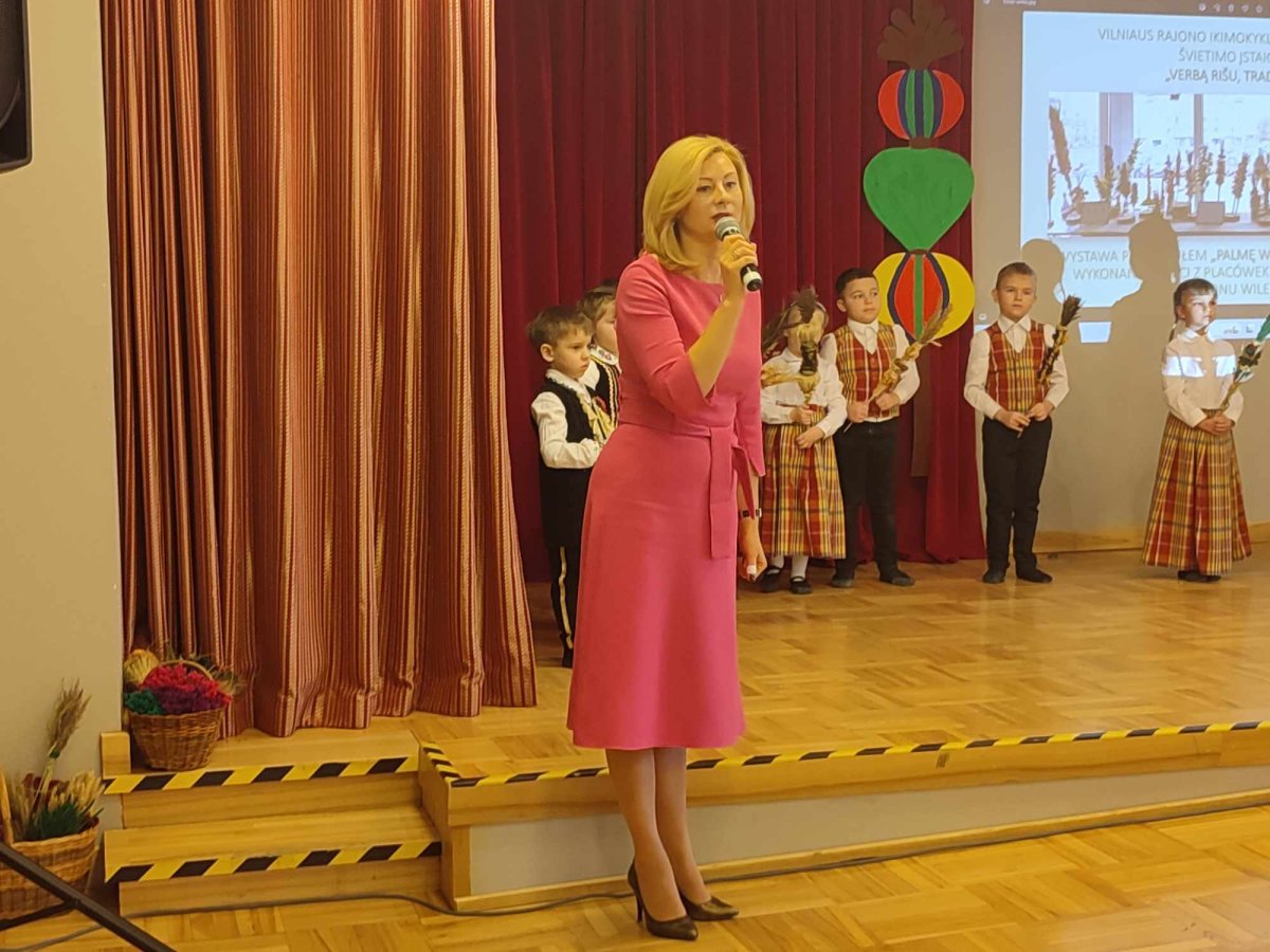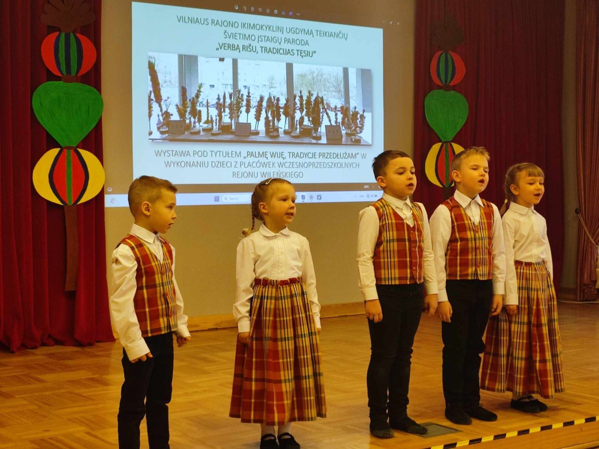 Kovo 8 dieną į baigiamąjį parodos „Verbą rišu, tradicijas tęsiu“ renginį buvo sukviesti parodos dalyviai – Vilniaus rajono ikimokyklinį ugdymą teikiančių švietimo įstaigų vadovai ir mokytojai, socialiniai partneriai iš Šalčininkų rajono Eišiškių lopšelio-darželio „Žiburėlis“. Renginys vyko parodos partnerių Tradicinių amatų centro Houvalto dvare salėje. Į renginį atvyko Lietuvos Respublikos seimo narė Rita Tamašunienė, kuri pasidžiaugė, kad puoselėjamos tradicijos, vaikai ugdomi pilietiškumo dvasia. Šventėje dalyvavusios ypatingos viešnios – sertifikuotos tautinio paveldo amatininkės, žaismingai dainomis ir posmais papasakojo apie verbų pynimo tradiciją.