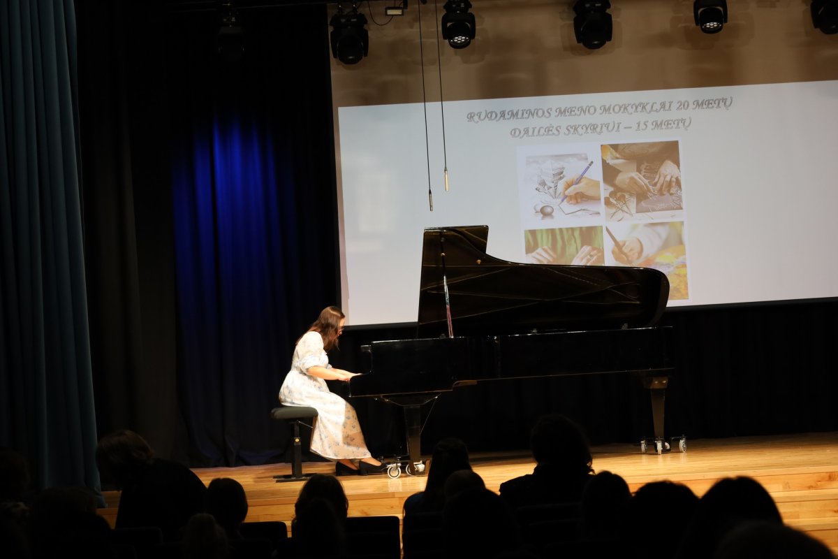 Gausiai susirinkusius šventės dalyvius muzikiniais kūriniais pasveikino mokyklos mokiniai: Karolina Skurat (fortepijonas, mokytoja R. Šimkienė), Leonard Maciulevič (fortepijonas, mokytoja I. Chodorovič), fleitų duetas: Eidvilė Zažecka ir Karolina Ragauskaitė (mokytojas G. Gelgotas), Dominykas Adamavičius (akordeonas, mokytoja S. Rozova).