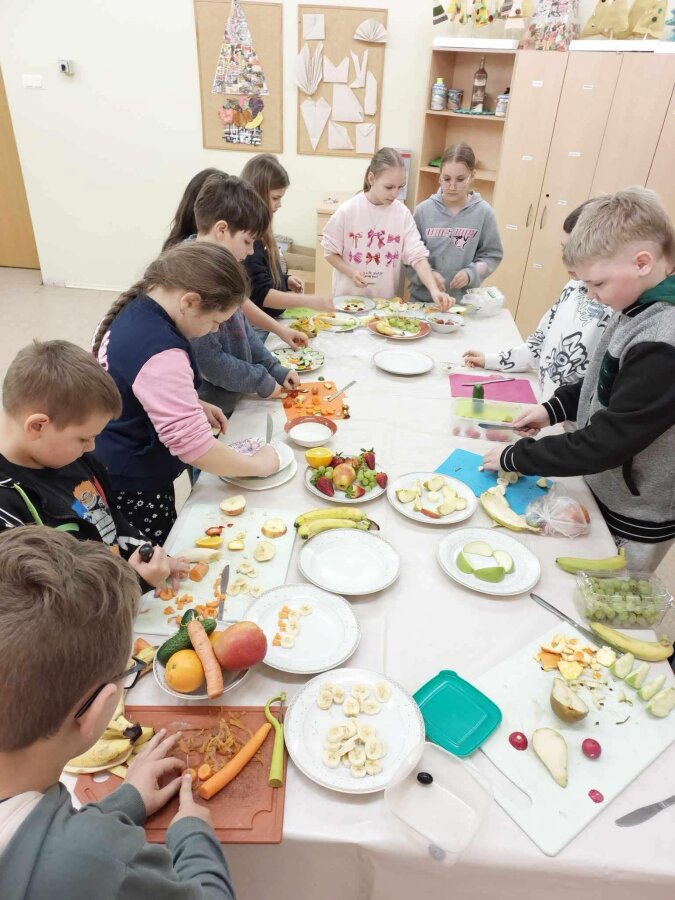 Technologijų pamokose 6 ir 7 klasių mokiniai kūrė ir gamino „Sveikos mitybos lėkštę“. Dirbdami grupėse jie aptarė subalansuotos mitybos principus, lavino kūrybiškumą ir įtvirtino žinias apie sveiką maistą.