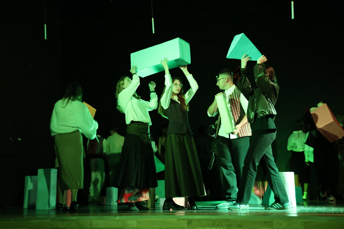 Pasitelkę šokį, muziką bei vaidybą jaunieji „Ryto“ gimnazijos aktoriai scenoje atgaivino legendą apie Rudaminos vardą. Žiūrovai buvo nukelti į laikus, kai šiose žemėse pradėjo kurtis pirmieji gyventojai, švelniai rinko gamtos dovanas, sėjo grūdus, statė namus ir gynė juos nuo priešų. Įspūdingiausia pasirodymo dalis – pasakojimas apie gražuolę Miną, kuri įmerkusi rankas į rusvą upės vandenį pajuto jos gyvybę ir ryšį su savimi. Taip gimė Rudaminos pavadinimas – iš Minos vardo ir rudo upės vandens, o legenda, papasakota jaunųjų aktorių, tapo gyvu senojo pasaulio atodūsiu.