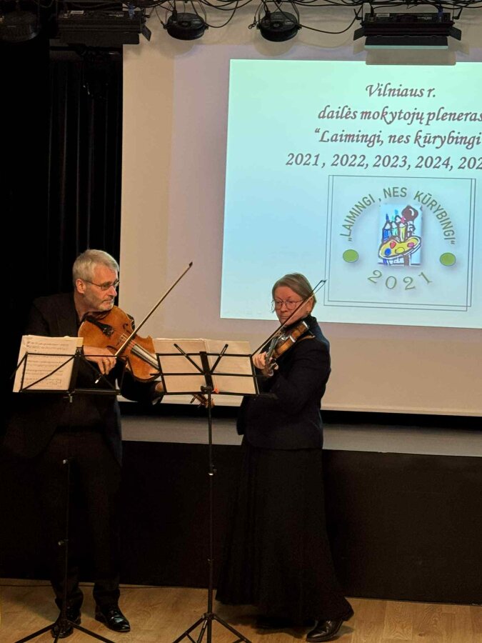 Renginiui ypatingo jaukumo ir profesionalumo suteikė muzikiniai pasirodymai – juos atliko talentingi Vilniaus r. Rudaminos meno mokyklos smuiko mokytojai Diana Šivickienė ir Žilvinas Švelnys. Jų atliekamos melodijos palietė jautriausias sielos stygas ir dar ilgai išliks klausytojų širdyse.