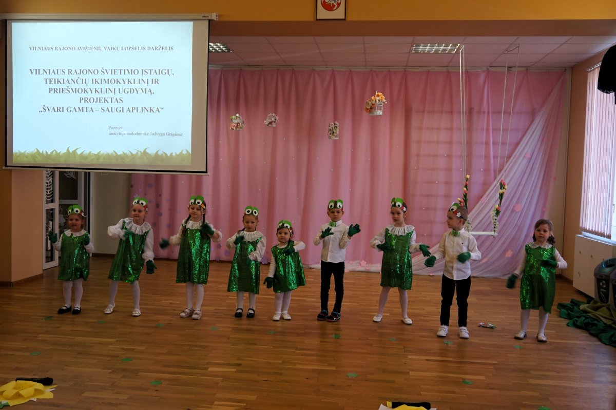 Vilniaus rajono Avižienių vaikų lopšelis-darželis, šių metų balandžio 2-30 dienomis organizavo Vilniaus rajono švietimo įstaigų, teikiančių ikimokyklinį ir priešmokyklinį ugdymą projektą „Švari gamta – saugi aplinka“. Projekto tikslas – ugdyti pagarbą ir meilę gamtai, skatinant prisidėti prie švarios aplinkos išsaugojimo. Projekte „Švari gamta – saugi aplinka“ dalyvavo Vilniaus rajono švietimo įstaigos, teikiančios ikimokyklinį ir priešmokyklinį ugdymą: Avižienių gimnazija, Glitiškių vaikų darželis, Maišiagalos vaikų lopšelis-darželis, Buivydiškių mokykla-darželis, Nemenčinės vaikų lopšelis-darželis, Avižienių gimnazijos Dūkštų pagrindinio ugdymo skyrius, Vaidotų mokykla-darželis „Margaspalvis aitvarėlis“, Pagirių „Pelėdžiuko“ lopšelis-darželis, Glitiškių vaikų darželis – Anavilio ikimokyklinio ugdymo skyrius, Maišiagalos Lietuvos didžiojo kunigaikščio Algirdo gimnazija, Rudaminos lopšelis–darželis, Maišiagalos kun. Juzefo Obrembskio gimnazija, Skaidiškių mokykla–darželis.