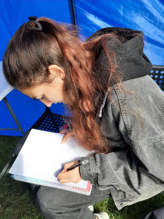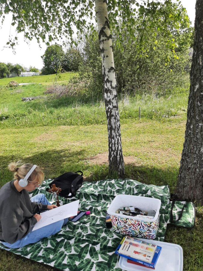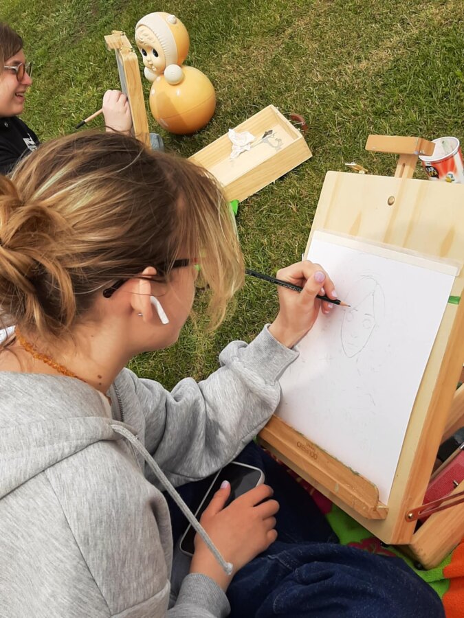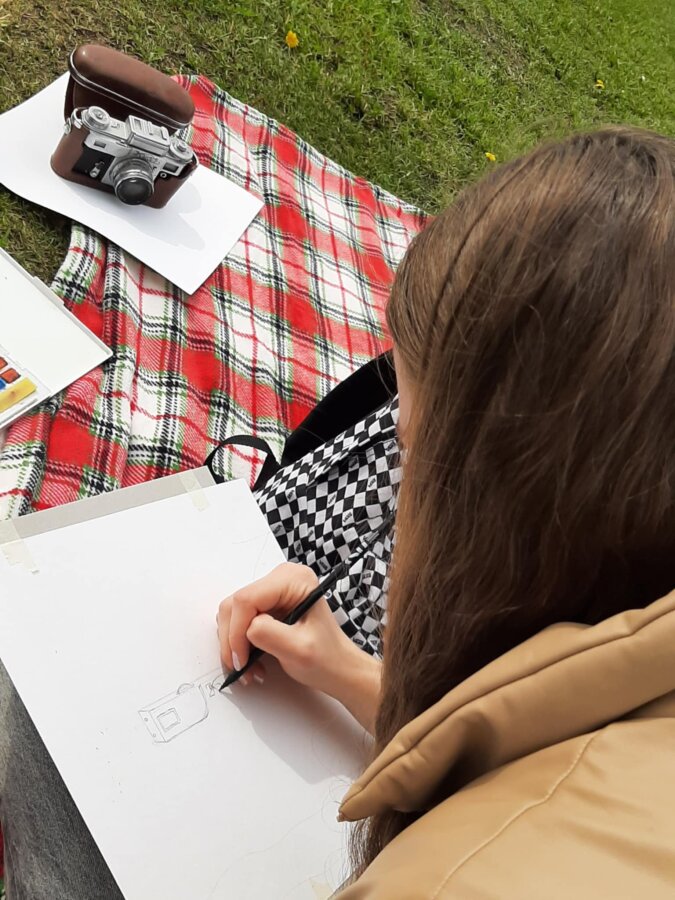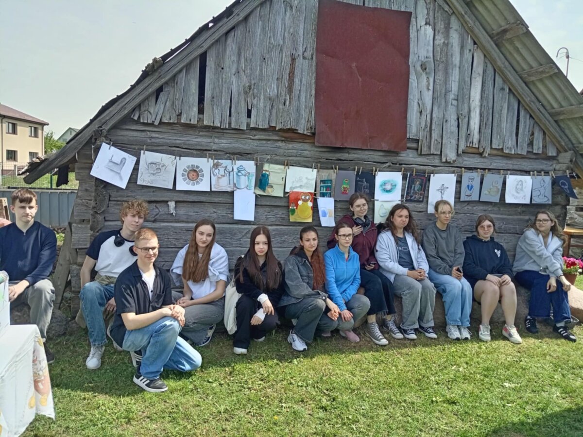 Renginio dalyvius svetingai priėmė dailės mokytoja metodininkė Česlava Liachovič bei II gimnazijos klasės mokinys Martin Mečkovskij. Martin yra įkūręs unikalų antikvarinių daiktų muziejų. Muziejaus kolekcija labai įvairi: senovinės spynos, lygintuvai, indai, muzikiniai prietaisai, verpstės, monetos, dokumentai, šventųjų skulptūrėlės, rankdarbiai, sena buitinė technika, žaislai ir daugybė kitų daiktų. Po įdomių pasakojimų prasidėjo kūrybinis procesas. Jaunieji menininkai grožėjosi saulėta diena, nuostabia aplinka, atskleidė savo kūrybines galias, patyrė piešimo džiaugsmą gamtoje, džiaugėsi savo bei kitų plenero dalyvių sukurtais kūrybiniais darbais. Po kelių valandų piešiniuose puikavosi įvairūs senoviniai daiktai. Buvo kupina naujų patyrimų ir kūrybinio džiaugsmo diena.