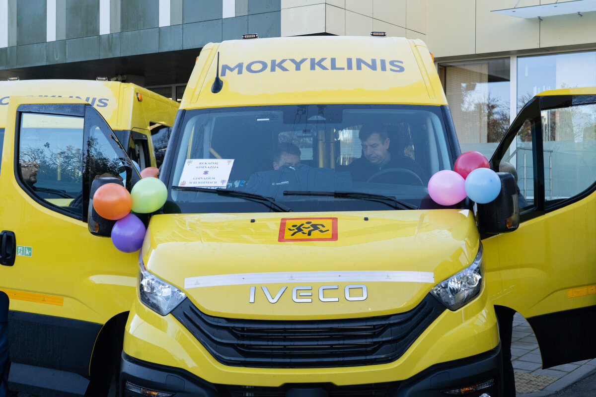 Naujieji „Iveco“ modelio 20-viečiai autobusiukai yra specialiai pritaikyti vaikų pervežimui. Jie išsiskiria ne tik padidinto komforto ergonominėmis sėdynėmis, bet ir įdiegtomis pažangiomis ADAS (Advanced Driver Assistance Systems) sistemomis maksimaliam saugumui garantuoti: juostos palaikymo, atstumo kontrolės, kelio ženklų atpažinimo, aklosios zonos stebėjimo sistemomis bei vairuotojo nuovargio atpažinimo funkcija. Be to, kiekviename autobuse įrengtas integruotas alkotesteris, užtikrinantis papildomą saugumo kontrolę prieš kelionę. Vieno įsigyto mokyklinio autobuso kaina – 88 tūkst. eurų.
