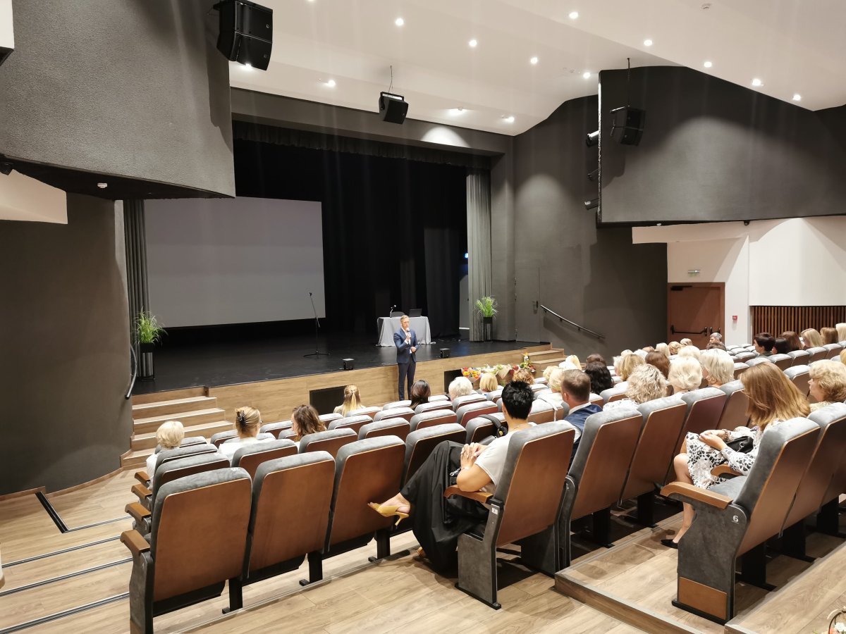 Renginyje dalyvavusi vicemerė Edita Tamošiūnaitė pasveikino visus artėjančių mokslo metų proga. Savo kalboje ji apmąstė švietimo vadovo kelią bei emocijas, kurios lydi švietimo įstaigų vadovus prieš naujus mokslo metus, pabrėždama, kad darbe dažnai tenka susidurti su iššūkiais, rutina ir nuolatinėmis reformomis. Tačiau, pasak jos, visos šios nerimo ir nuovargio akimirkos praeina, kai prasideda nauji mokslo metai, kai mokytojai sugrįžta į savo švietimo įstaigas ir mato besišypsančius bei laimingus vaikus.