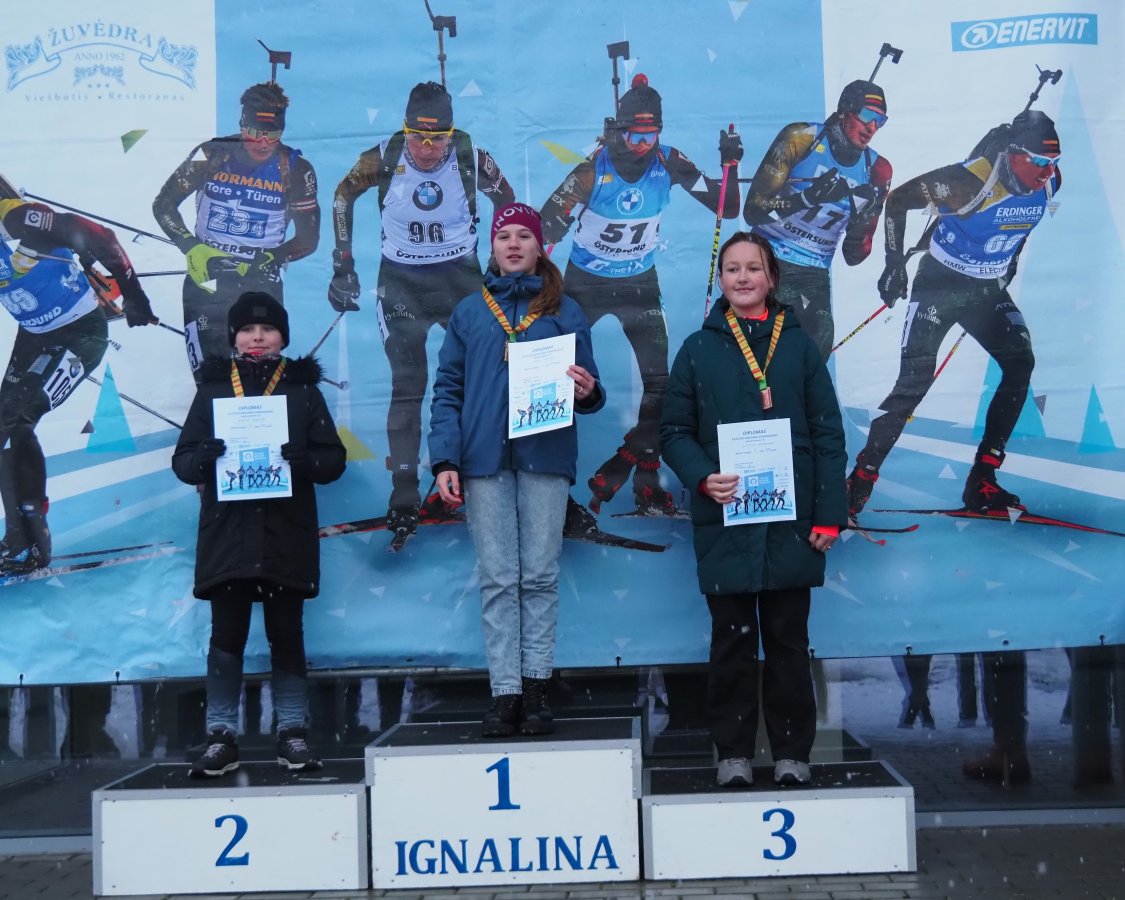 Vilniaus rajono Nemenčinės sporto mokyklos atstovai iškovojo 2 aukso ir 3 bronzos medalius. Mergaičių 2009-2010 gim. m. grupėje Eveta Šidlauskaitė buvo greičiausia distancijoje ir nugalėjo su 48,8 sek. pranašumu, 4 km distancijoje užtrukusi 17 min. 41,22 sek. ir iškovojusi Lietuvos biatlono čempionato aukso medalį. Eveta trijose šaudymuose suklydo 7 kartus. Amelija Bernatovič užėmė 5 vietą su rezultatu 20 min. 21,08 sek. Anton Butkevič užėmė 3 vietą tarp vaikinų, 4 km įveikęs su rezultatu 21 min. 21,00 sek.