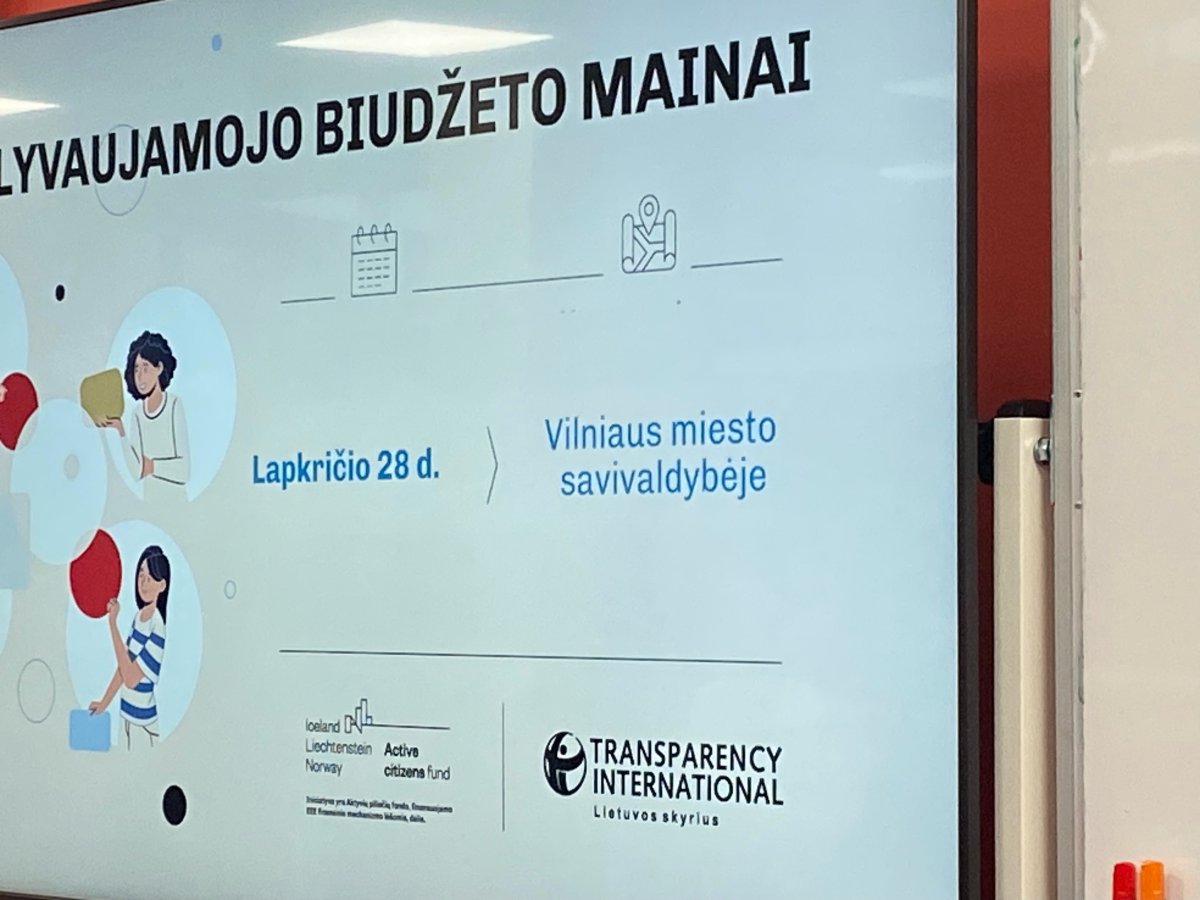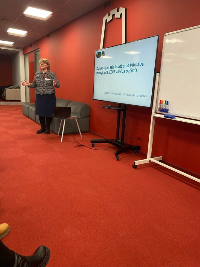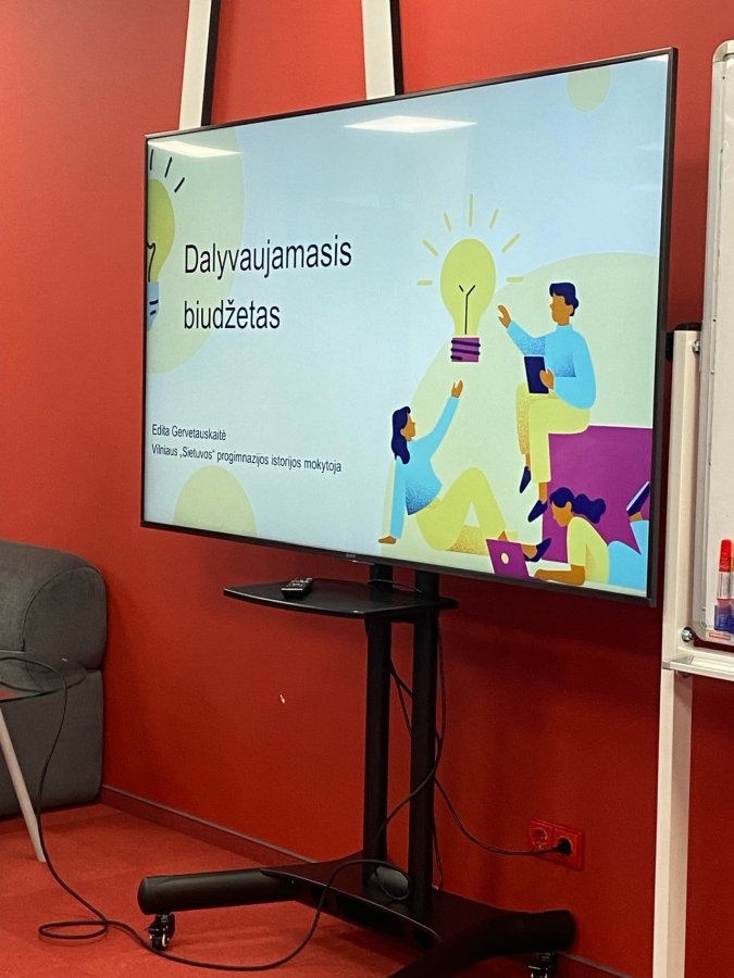Dalyvaujamasis biudžetas – tai pasaulyje paplitęs moksleivių ir mokyklos bendruomenės bendradarbiavimo modelis, kurio tikslas – įgyvendinti dalyvaujamąjį biudžetą gimnazijoje, įtraukti mokinius į viešųjų sprendimų priėmimą ir prisidėti prie gimnazijos biudžeto dalies paskirstymo. Siekdami tęsti sėkmingą veiklą ir bendradarbiavimą su išorės institucijomis dalyvavome „Dalyvaujamojo biudžeto mainai Vilniaus mieste“ susitikime. Jame dalijomės patirtimi: nuo ko pradėti dalyvaujamojo biudžeto projektą, kad jis nepatirtų „fiasko“; ką daryti, kad nepasiklystume laike, kaip tinkamai organizuoti projekto laiko valdymą; kaip nepalūžti nuo biurokratinės naštos; kaip įtraukti mokinius ir bendruomenę į šią veiklą. Labai svarbi šios konferencijos „žinutė“ buvo skleisti žinią gimnazijos bendruomenei apie dalyvaujamojo biudžeto projektą, nes ne visi žino, kokia šios veiklos esmė.