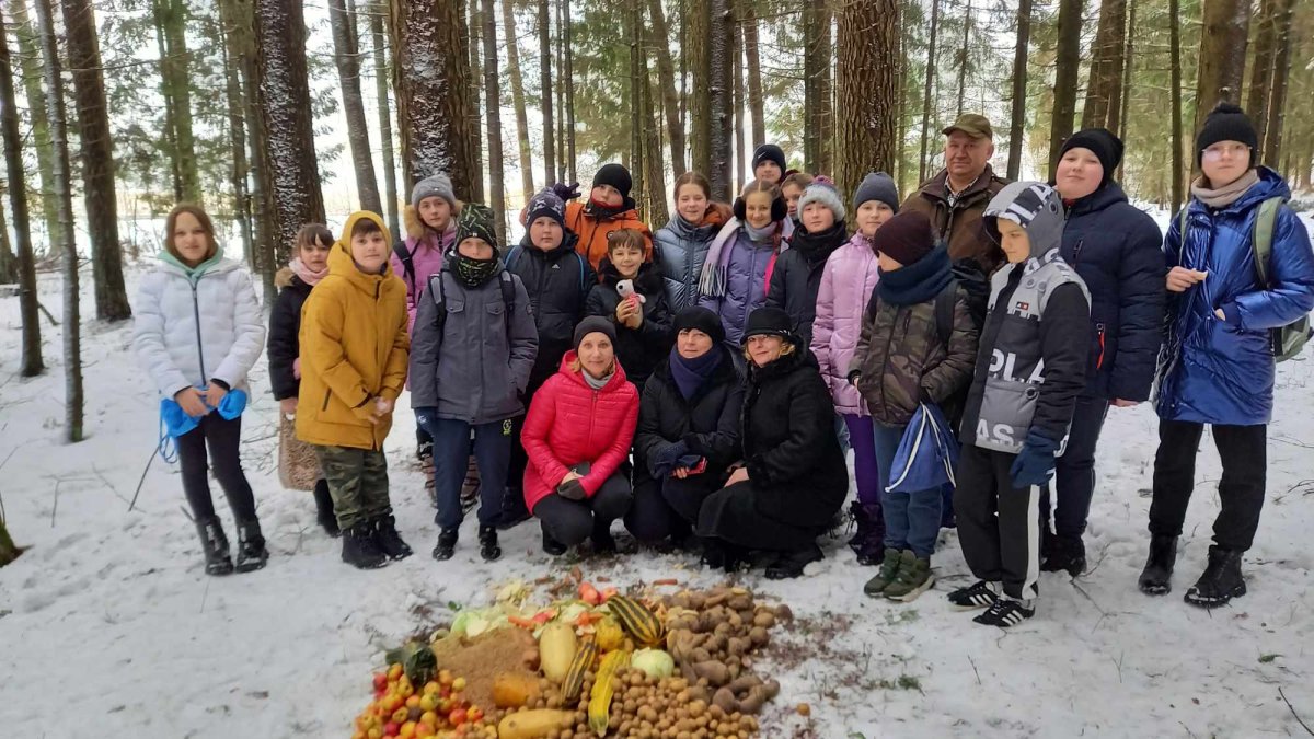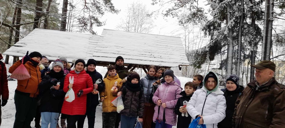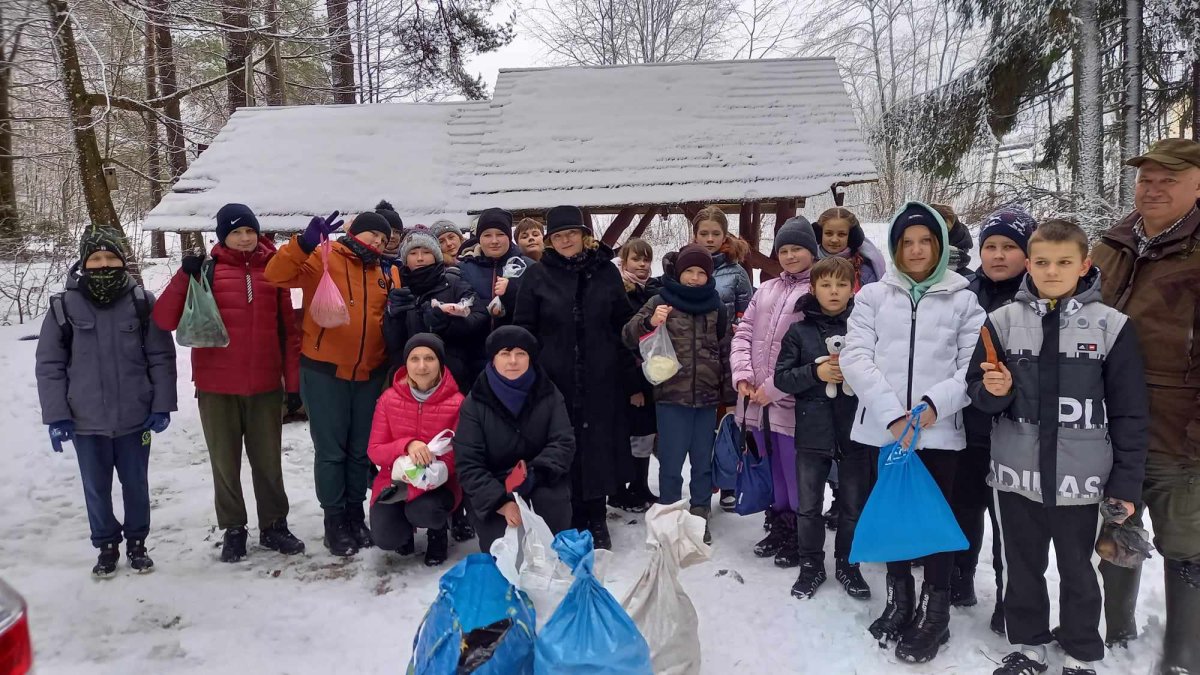 Kaip ir kiekvienais metais, vykome į Šalčininkų miškų urėdijos Kenos girininkiją. Sutartą valandą mus maloniai pasitiko miškininkai prie jau paruošto kurti laužo. Jie pasveikino visus ir pakvietė į mišką. Parodytoje šėrimo vietoje vaikai sukrovė atvežtas gėrybes: bulves, obuolius, morkas, kopūstus, grūdus. Po to visus supažindino su taisyklėmis, kaip šerti žvėrelius, papasakojo apie mūsų miškuose gyvenančių gyvūnų rūšis, apie jų išvaizdą, elgseną, gyvenimo būdą. Vaikai ieškojo įvairių pėdsakų sniege, bandė atspėti, kieno jie. Surado stirnos, lapės ir kiškių pėdsakų. Susitikimo pabaigoje organizatoriai pavaišino visus karštomis dešrelėmis ir arbata.