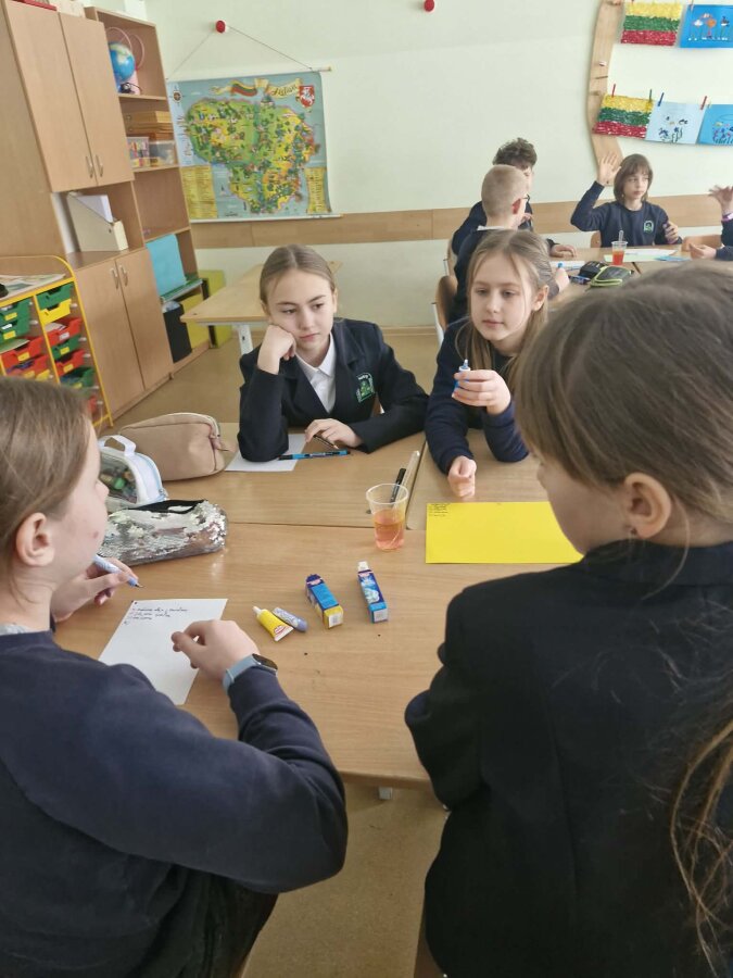 Nuoširdžiai dėkojame už šį STEAM‘inį nuotykį pradinio ugdymo mokytojoms J. Skulskienei, V. Krivelienei, R. Petruškienei ir O. Gerasimovič, karjeros specialistei E. Vilimaitei-Kuorienei ir gausiam būriui mokytojų dalykininkų – I. Babinskai, D. Golnis, J. Markovskajai, A. Vent, J. Šibirkštei, A. Dudutienei, S. Orlakienei ir T. Laurinaičiui bei visiems į edukacijas lydėjusiems mokytojams ir mokinio padėjėjams už suplanuotas, organizuotas ir pravestas veiklas, rūpestį mokiniais, sukurtą įkvepiančią savaitės atmosferą. Smagu, kad veiklose su pradinių klasių mokiniais savanoriavo ir 8b klasės mokinės Smiltė, Luka, Gabija ir Mėta – dėkojame už pagalbą mokytojams vedant veiklas, atsakingumą ir nuoširdų įsitraukimą. Tokios savaitės dar kartą primena, kad stipriausi atradimai gimsta ten, kur susitinka vaikų smalsumas, mokytojų kūrybiškumas ir visos bendruomenės bendrystė.
