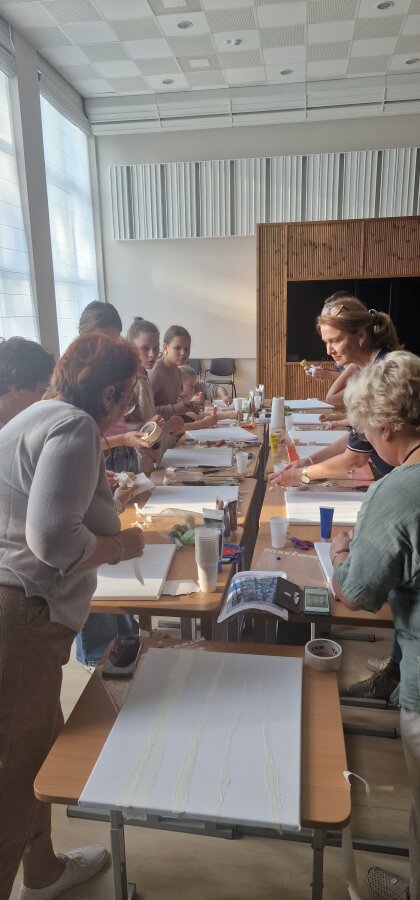 Renginys, surengtas bendradarbiaujant su Vilniaus rajono Rudaminos kultūros centru, sukvietė mokinius, mokytojus, tėvus ir visus bendruomenės narius. Pasitelkę drobes, teptukus ir rudens spalvų paletę, dalyviai kūrė savo rudens paveikslus, dalinosi įkvėpimu bei patyrė bendrystės džiaugsmą.