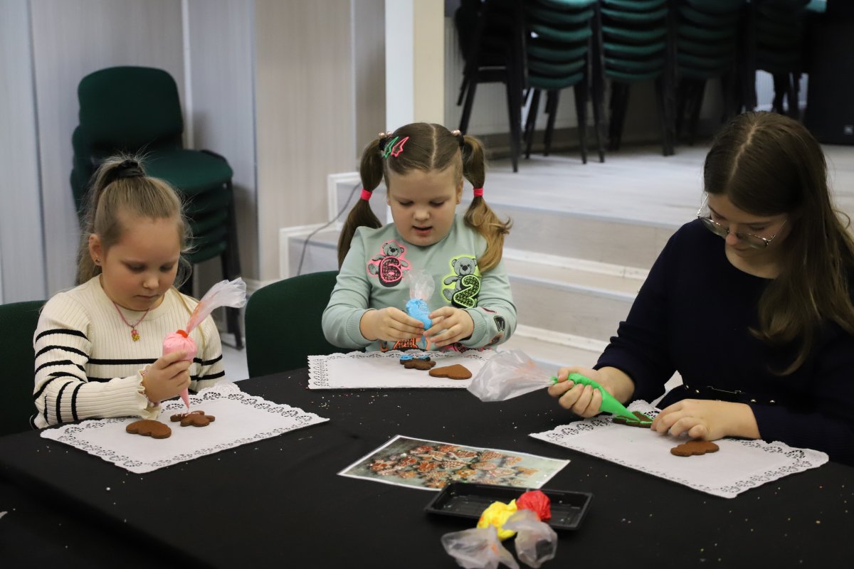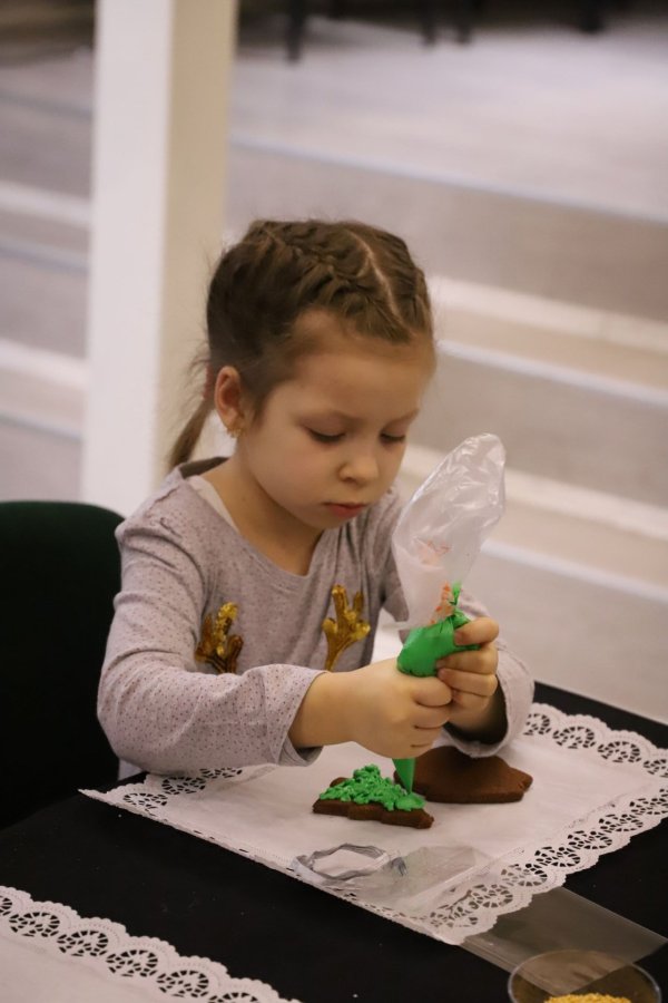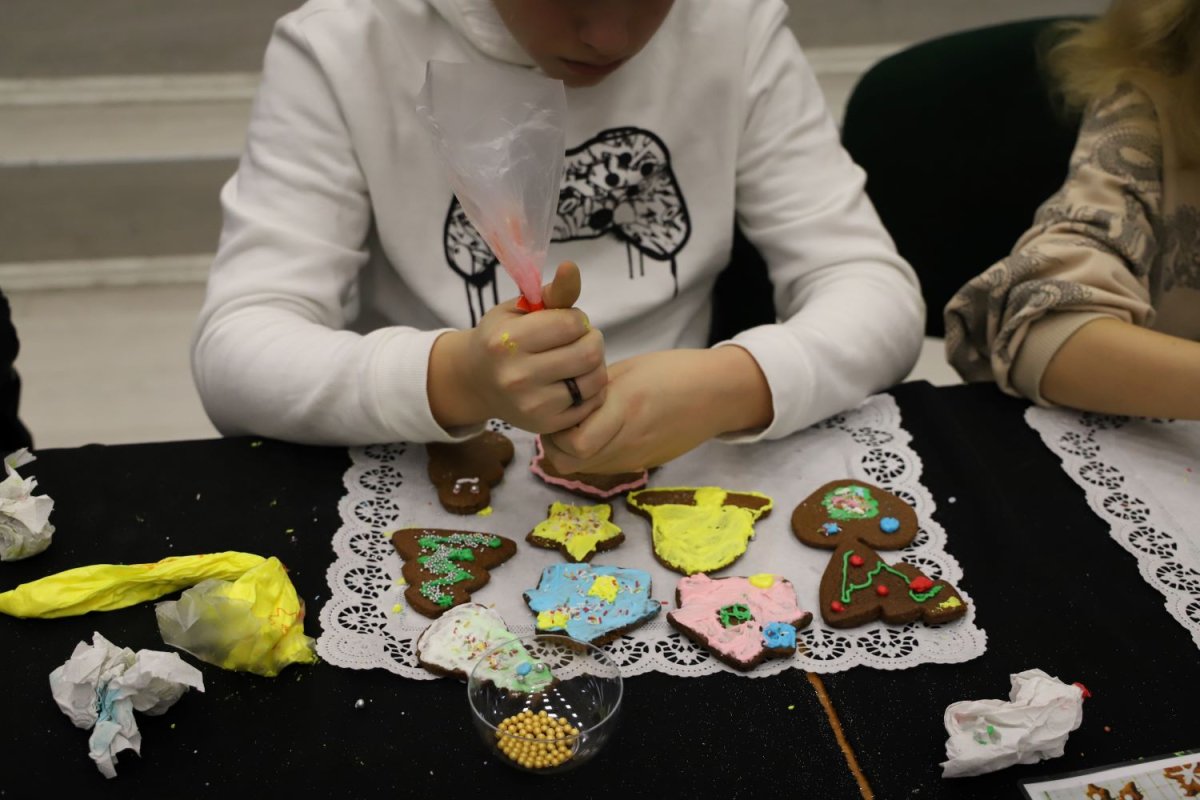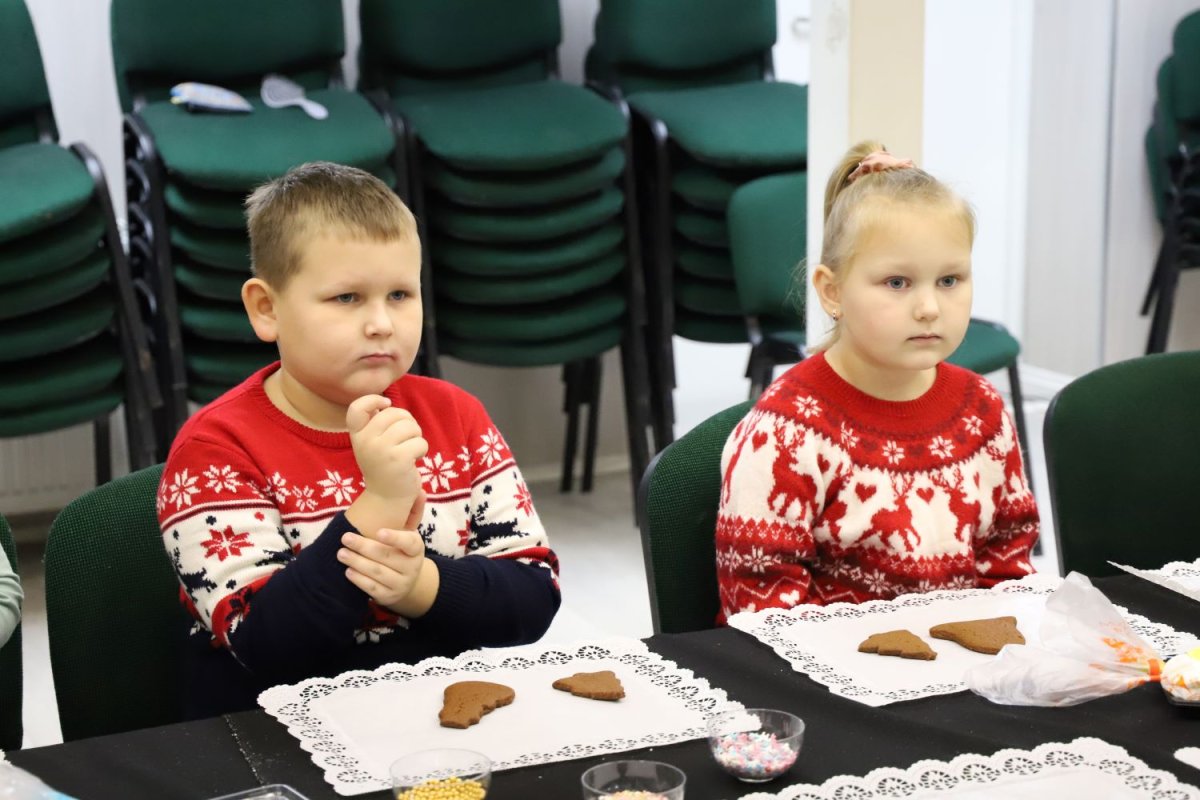 Šių dirbtuvių metu vaikai mokėsi sausainių dekoravimo paslapčių. Vaikai pažino, kaip gražiai ir įdomiai dekoruoti imbierinius meduolius. Kūrybiškai puošiant meduolius galima sukurti tikrus stebuklus.
