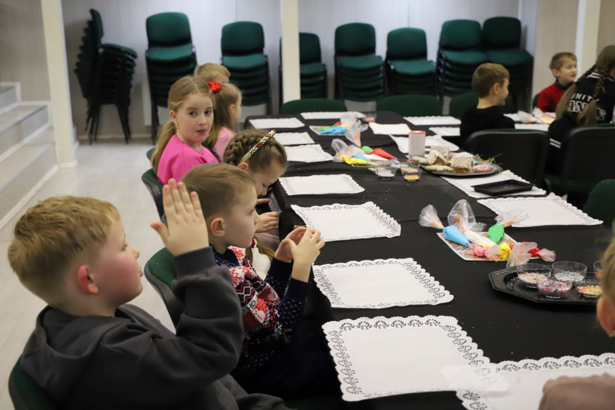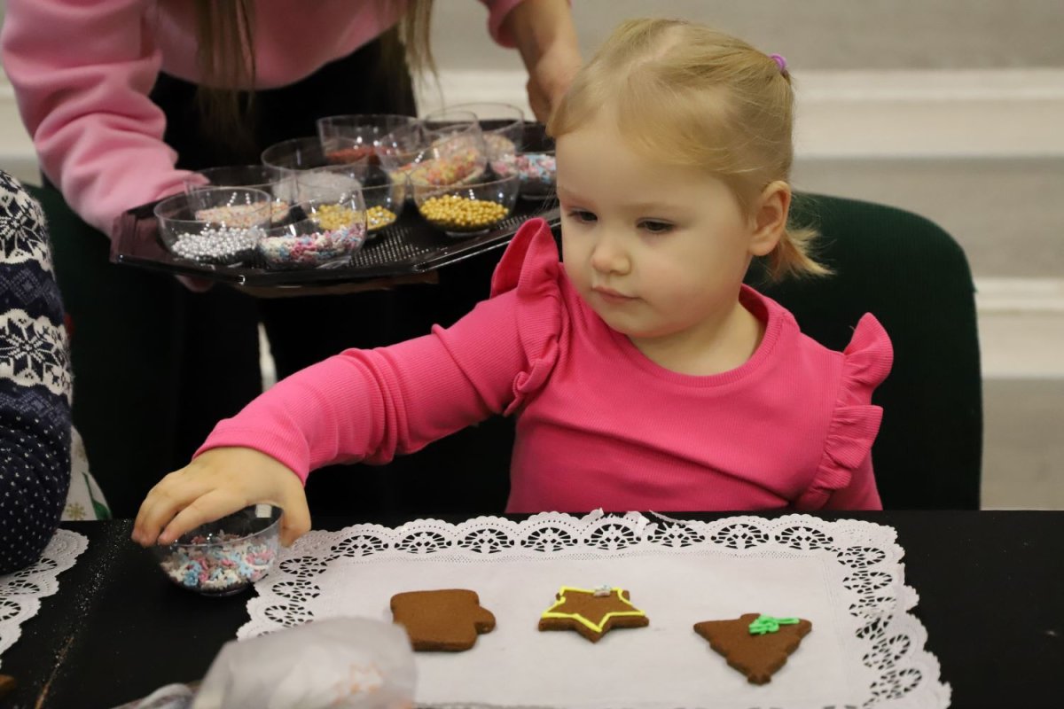Užsiėmimo metu vaikai pagal savo sumanymus gražiai dekoravo imbierinius sausainius, naudodami spalvingą glajų, įvairių rūšių karoliukus ir pabarstukus. Kiekvienas meduolis atrodė kitaip, buvo ypatingas ir unikalus. Dirbtuvės padėjo kiekvienam vaikui pažadinti savyje tikro menininko sielą.